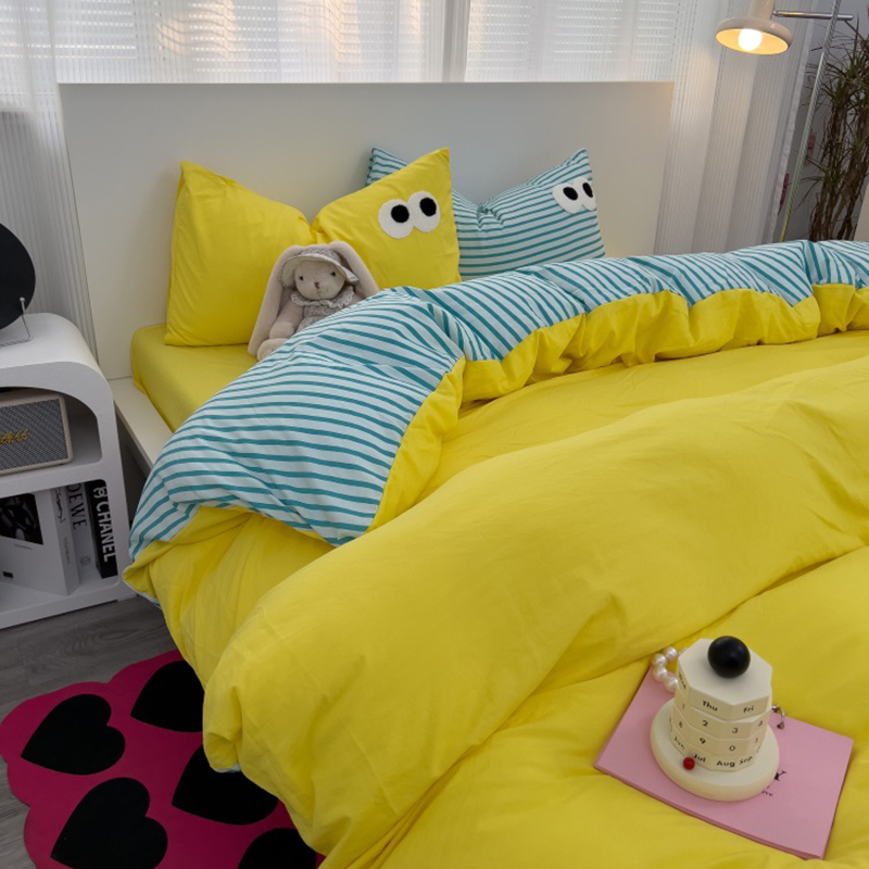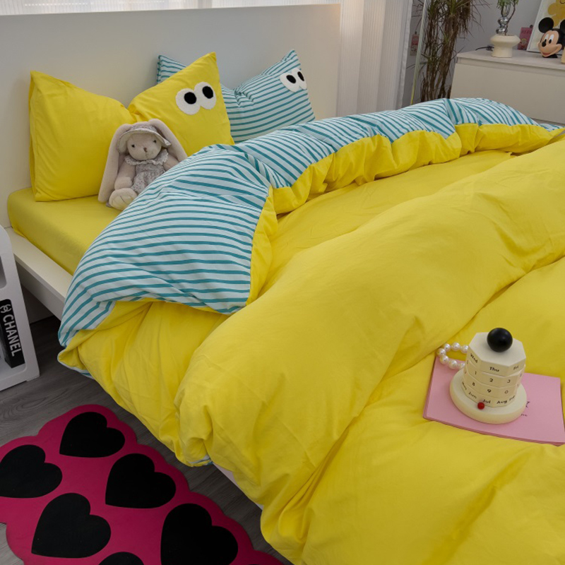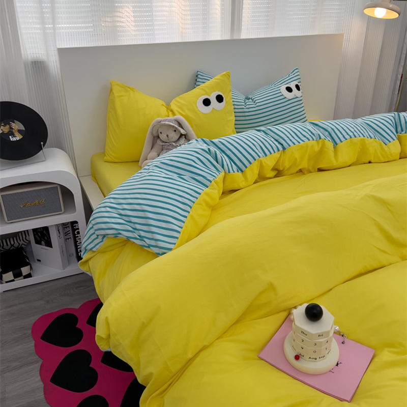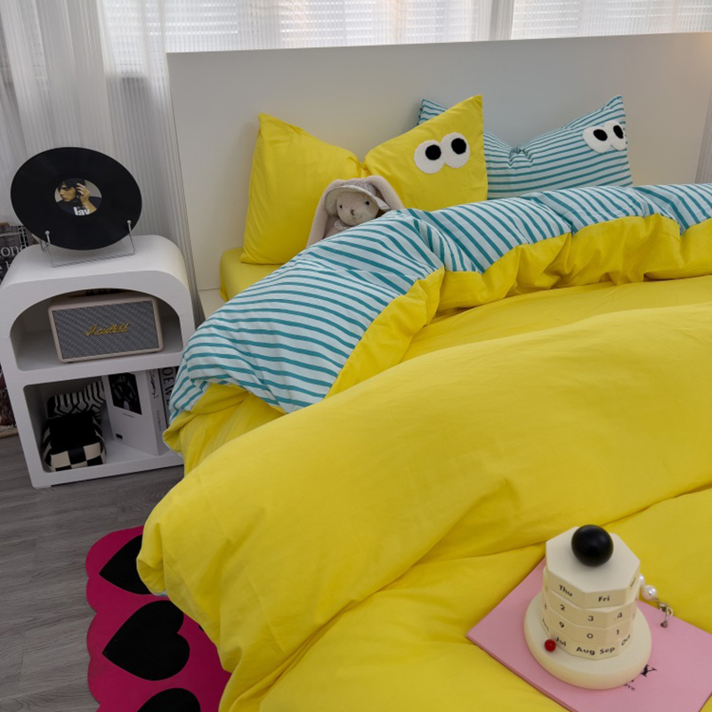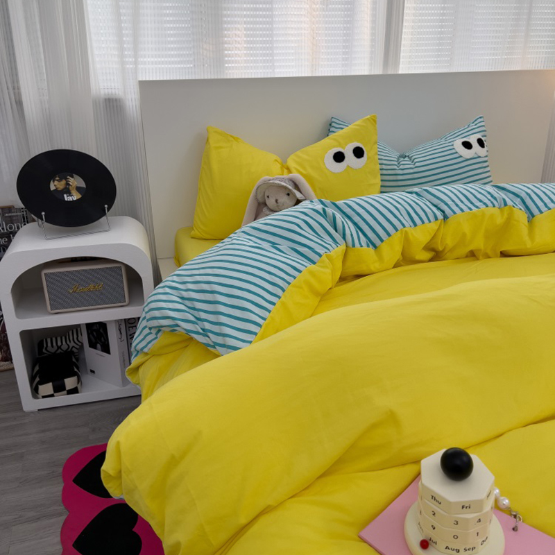 当前位置: 91家纺网 > 商品网购 > 床品套件 > 四件套 > 水洗棉四件套 > 奈颜 2023新款爆款水洗棉多巴胺混搭大眼毛巾绣四件套--条纹大眼(手机实拍图) 柠檬黄+条纹蓝
