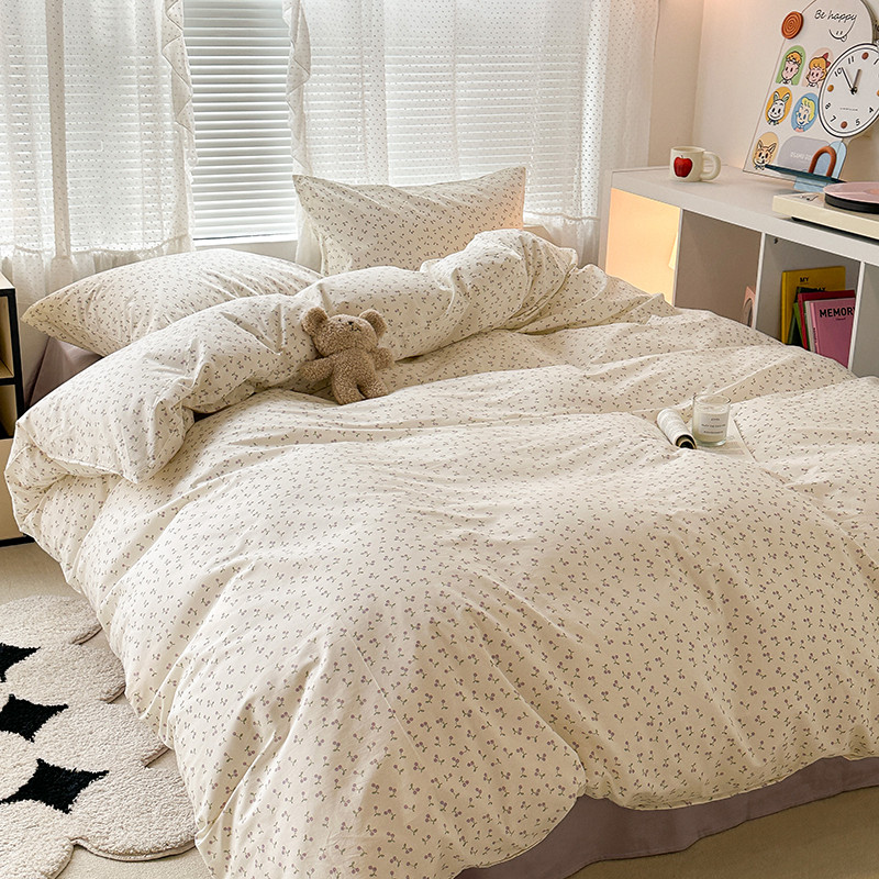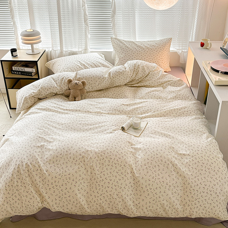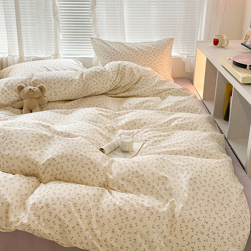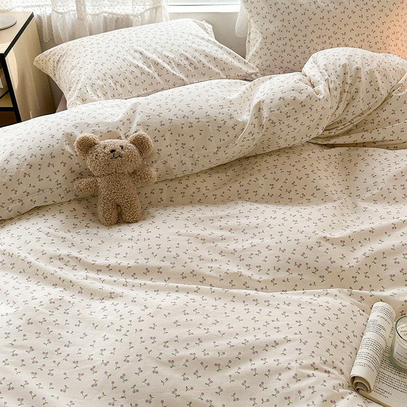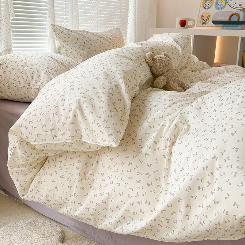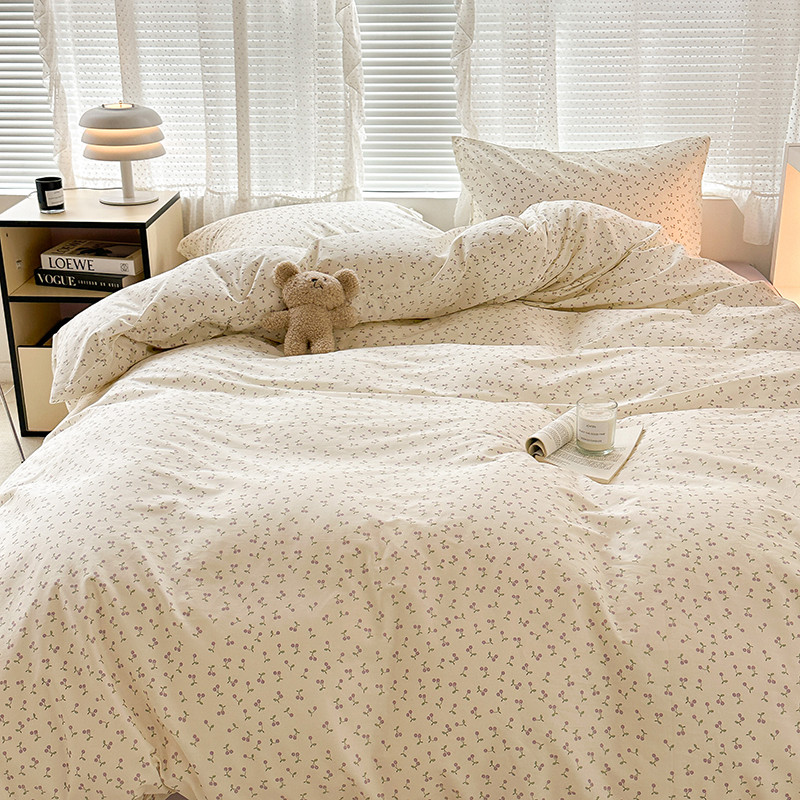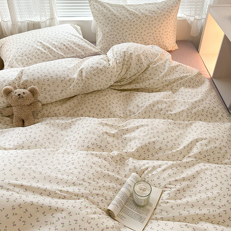 (总)昔可家纺 2023新款全棉小花系列四件套,柏林少女,小小的樱桃,紫色葡萄