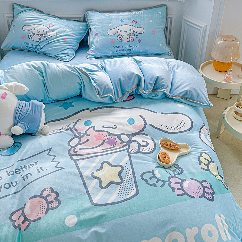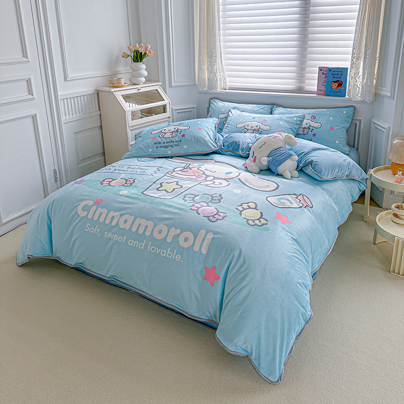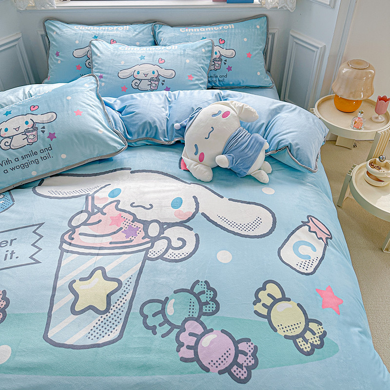 当前位置: 91家纺网 > 商品网购 > 床品套件 > 四件套 > 宝宝绒四件套 > 蘭菲家纺 2023新款宝宝绒卡通印花四件套及单品 奶茶来了