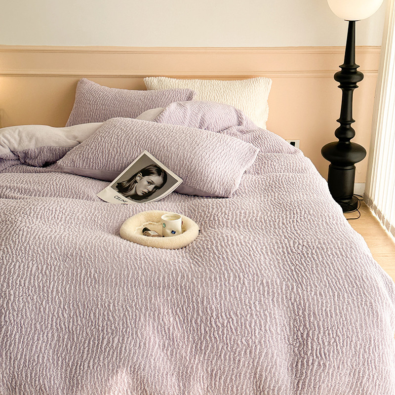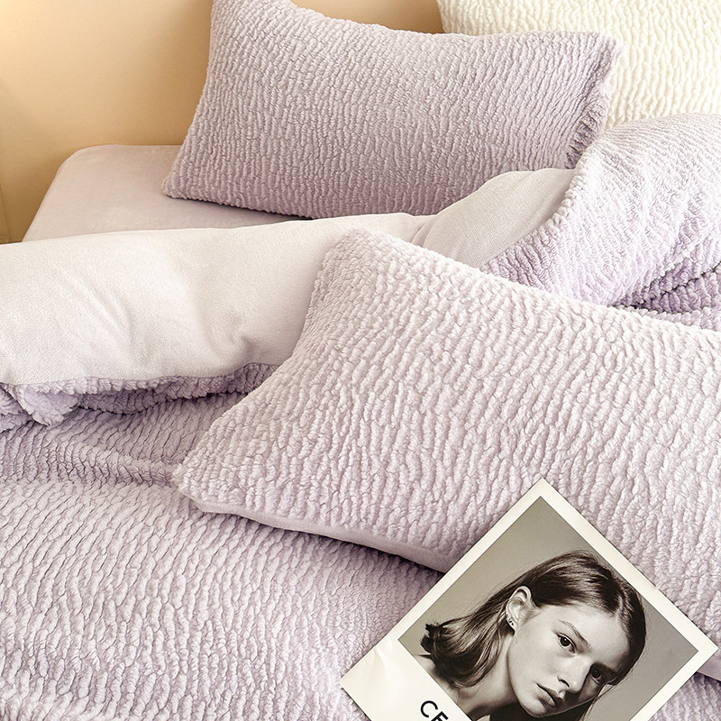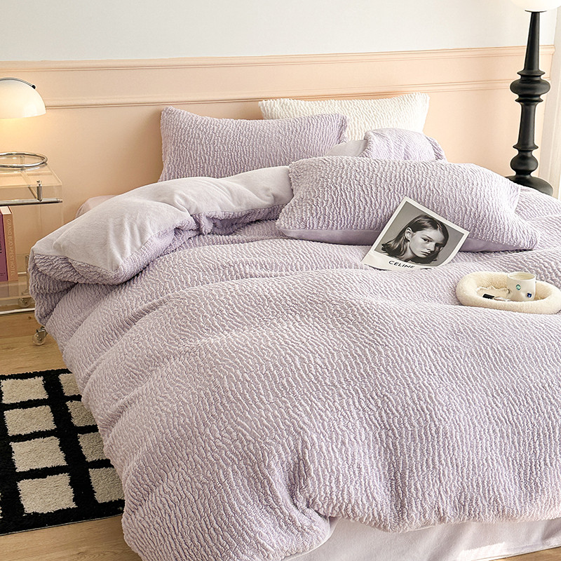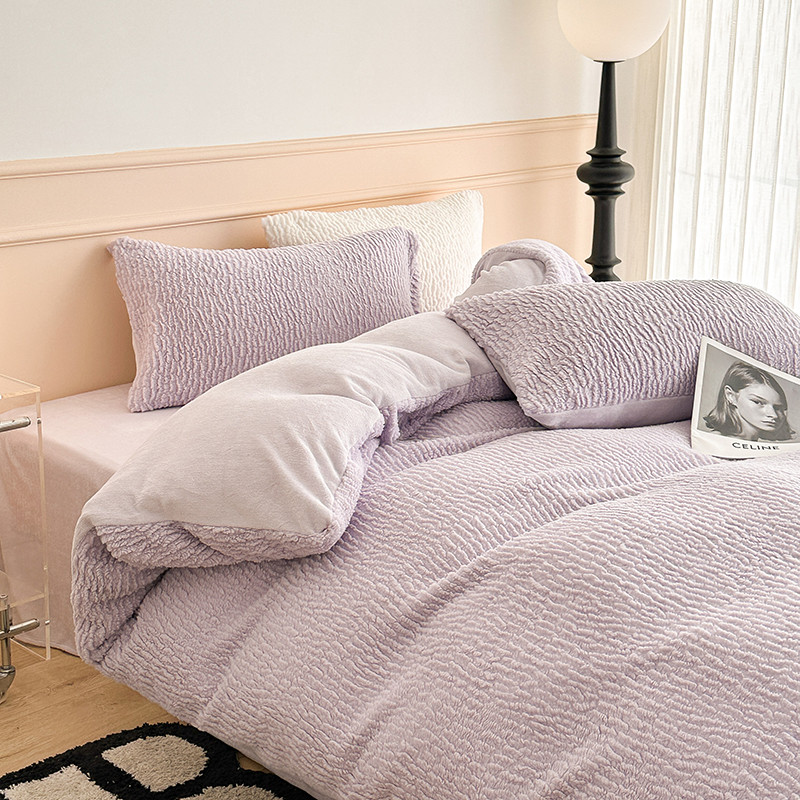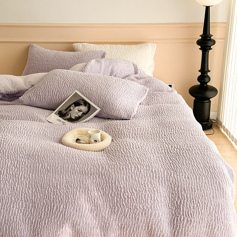 昔可 2023新款纯色泡芙云朵绒四件套 香芋紫