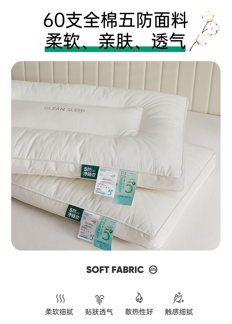 当前位置: 91家纺网 > 商品网购 > 枕头/枕芯/保健枕/颈椎枕 > 普通枕芯 > 乐可 2023新款5防净睡枕 5防净睡枕-中【一对装】