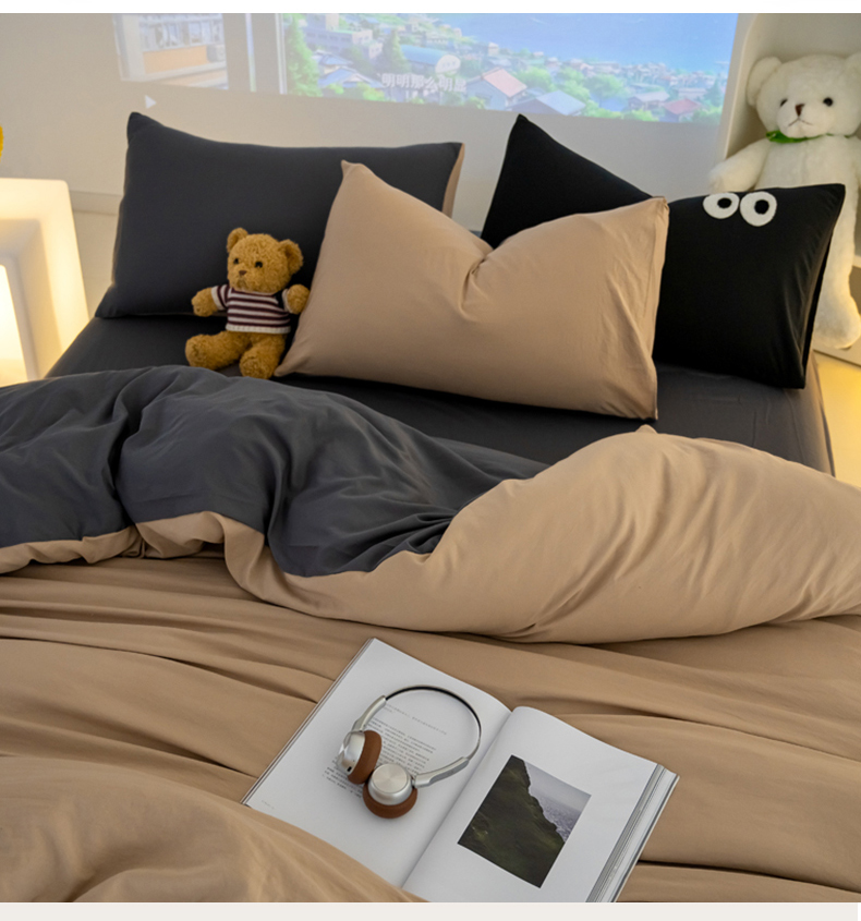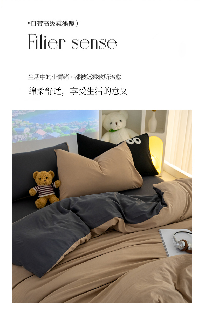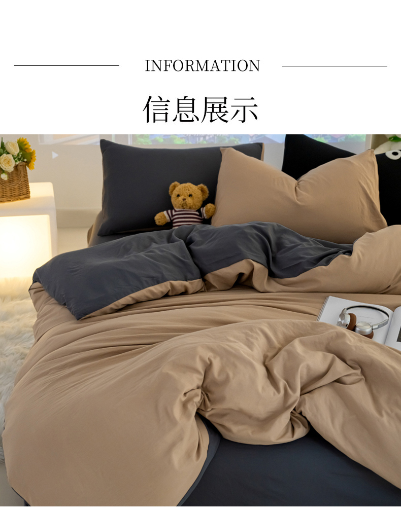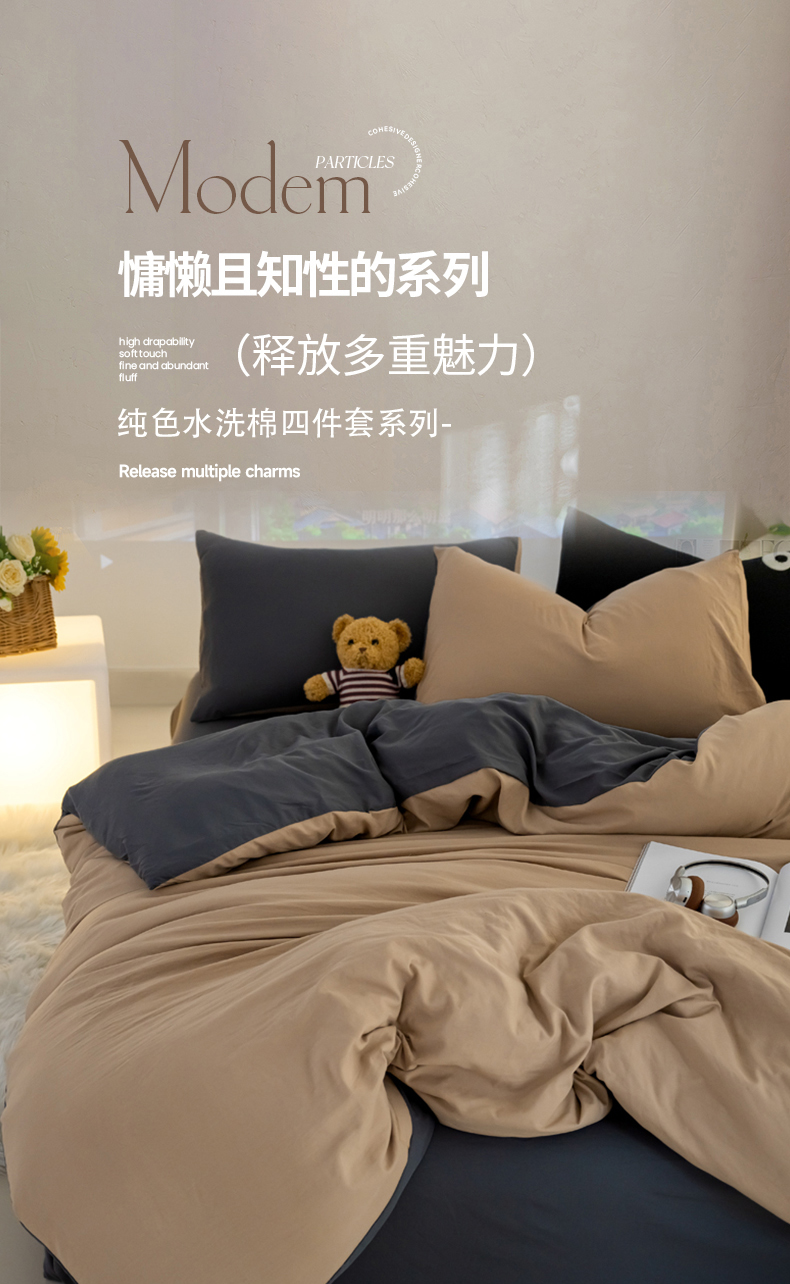 当前位置: 91家纺网 > 商品网购 > 床品套件 > 四件套 > 全棉普通四件套 > 韩秀家纺 2024新款超柔水洗棉双层纱大眼睛款纯色四件套 奶茶灰