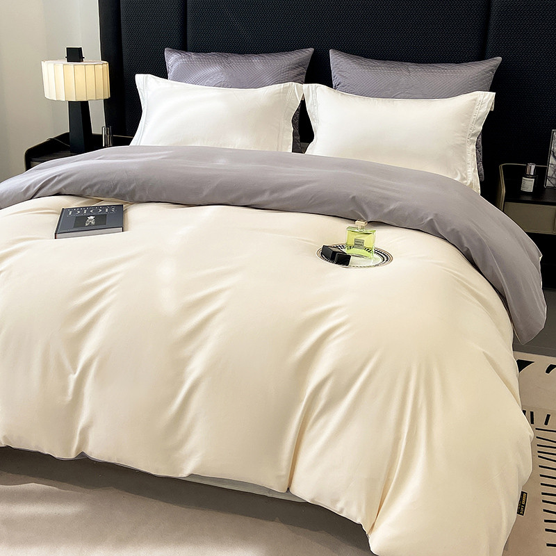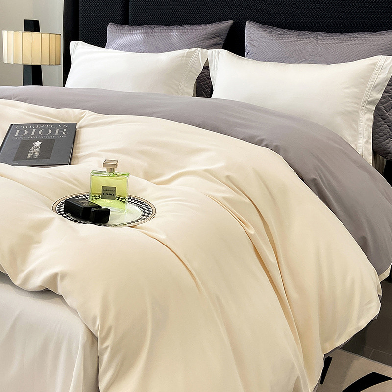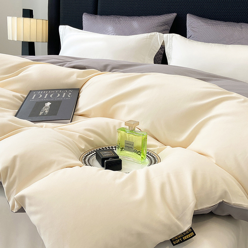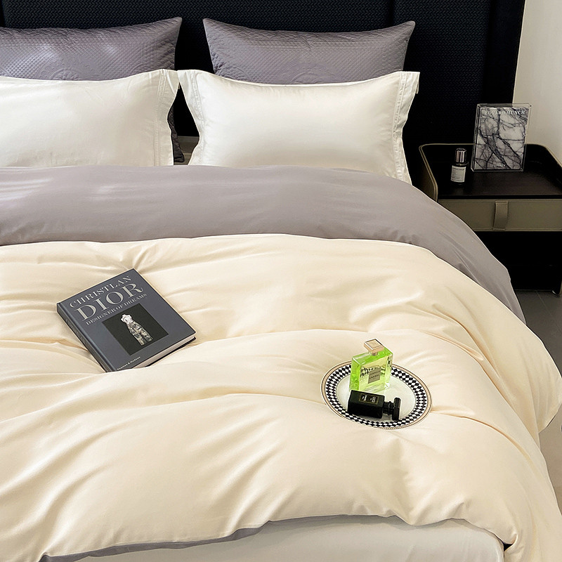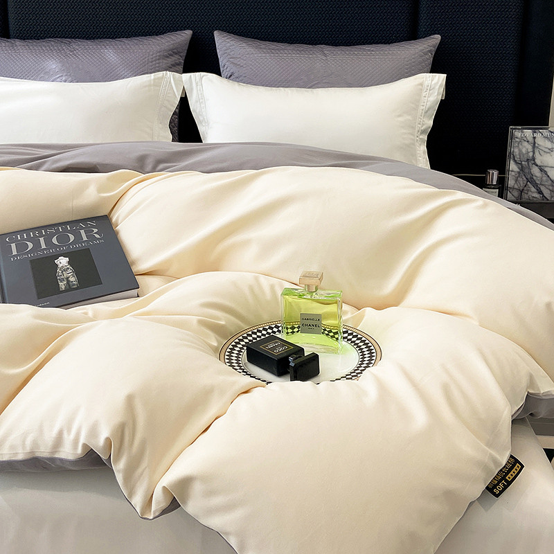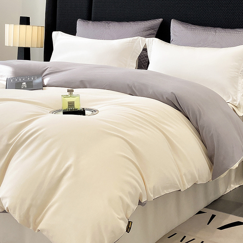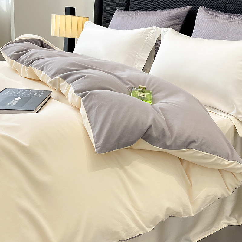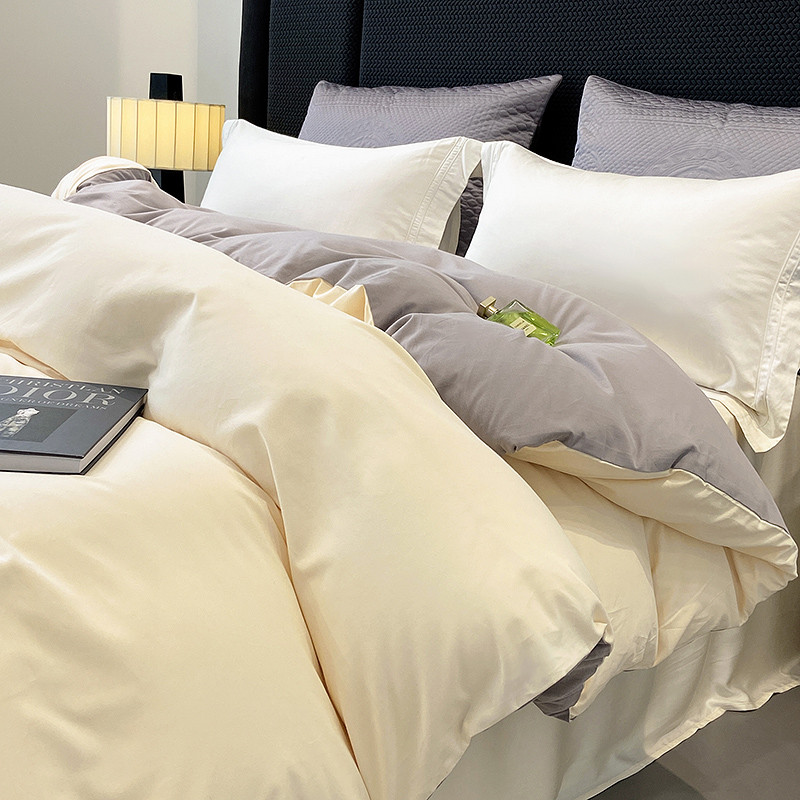 (总)莱阁亿 2025新款全棉60S素色双拼四件套,槐暖鹅黄,焦糖+栗色,玫瑰红茶,暮色烟雨,雅士灰+天空蓝,烟灰紫+香槟金,莺茶绿+香槟金,樱花白桃,陨石灰+拿铁