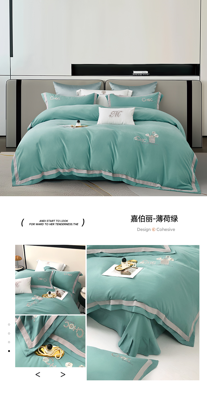 云锦家居 2024春夏新品云柔棉刺绣四件套-嘉伯丽 嘉伯丽-薄荷绿