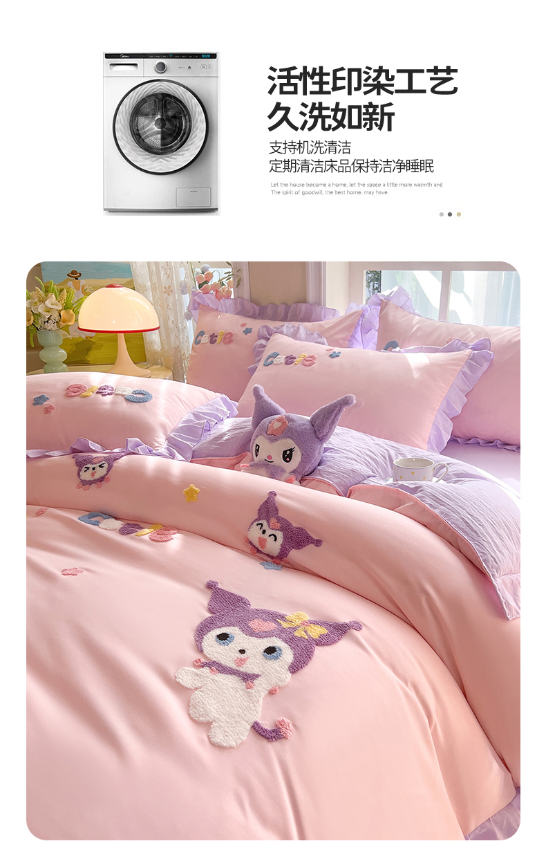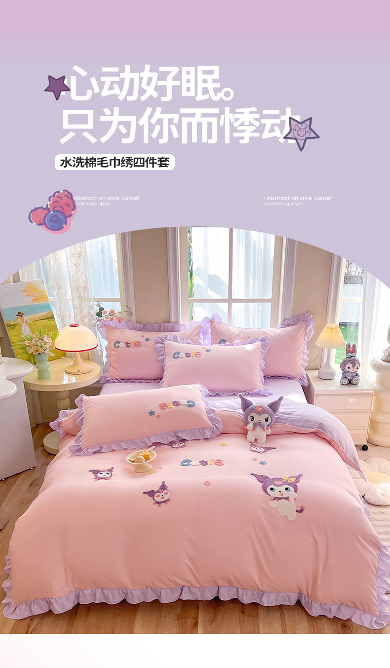 当前位置: 91家纺网 > 商品网购 > 床品套件 > 四件套 > 水洗棉四件套 > 雨菲家纺 2024新款水洗棉毛巾绣米米兔和开心狗四件套 米米兔-粉紫