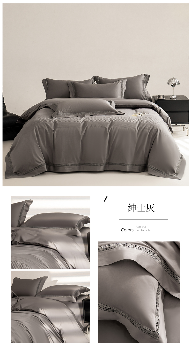 商品名称:爱丽丝 2024新款100支长绒棉镂空提花四件套 奢尚-绅士灰