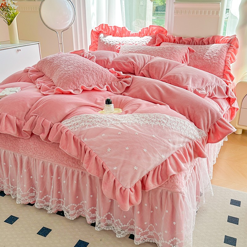 漫布云家纺2023新款浪漫花语秋冬保暖加厚牛奶绒夹棉床盖四件套