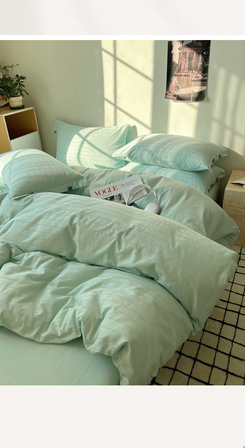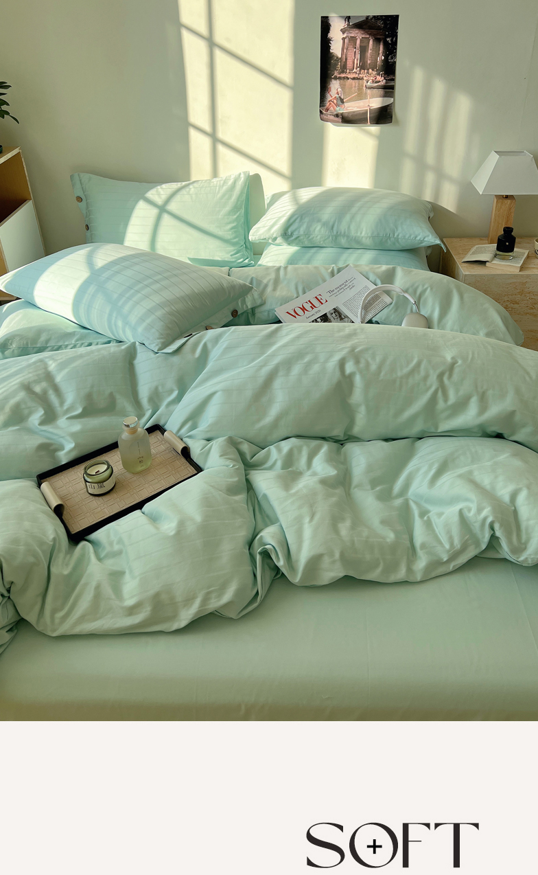 当前位置: 91家纺网 > 商品网购 > 床品套件 > 四件套 > 长绒棉四件套 > 三朵家纺 2024新款春夏无印侘寂风提花长绒棉四件套 宽条-冰海蓝