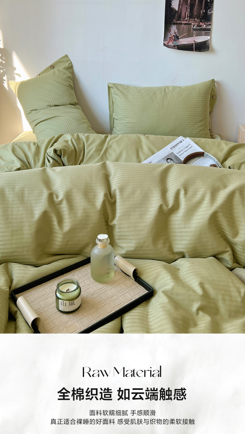 当前位置: 91家纺网 > 商品网购 > 床品套件 > 四件套 > 长绒棉四件套 > 三朵家纺 2024新款春夏无印侘寂风提花长绒棉四件套 细条-豆蔻