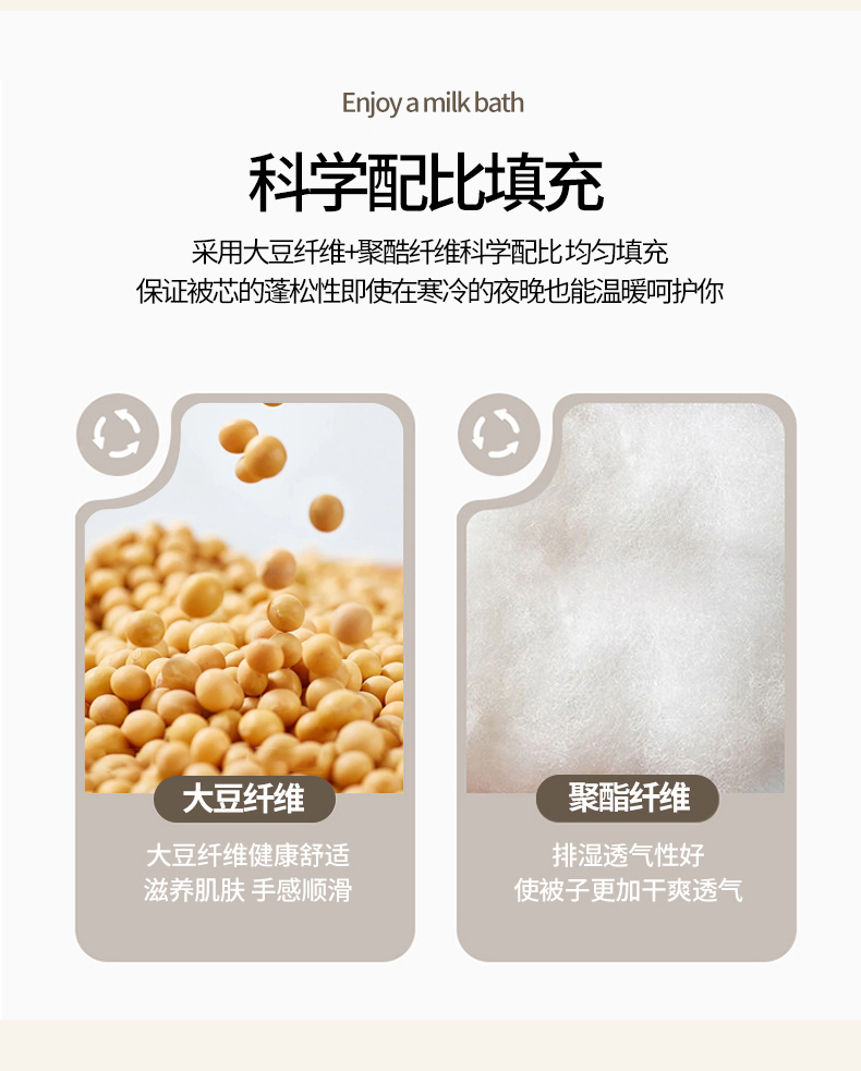 填充纤维种类: 大豆蛋白改性聚酯纤维