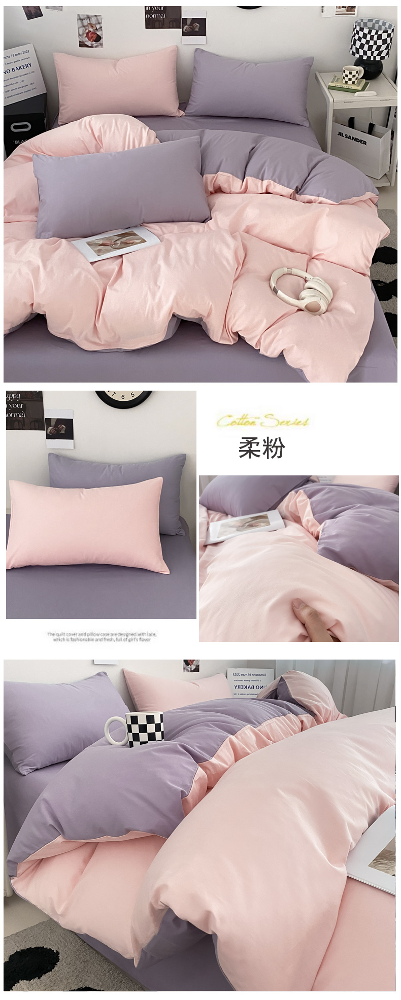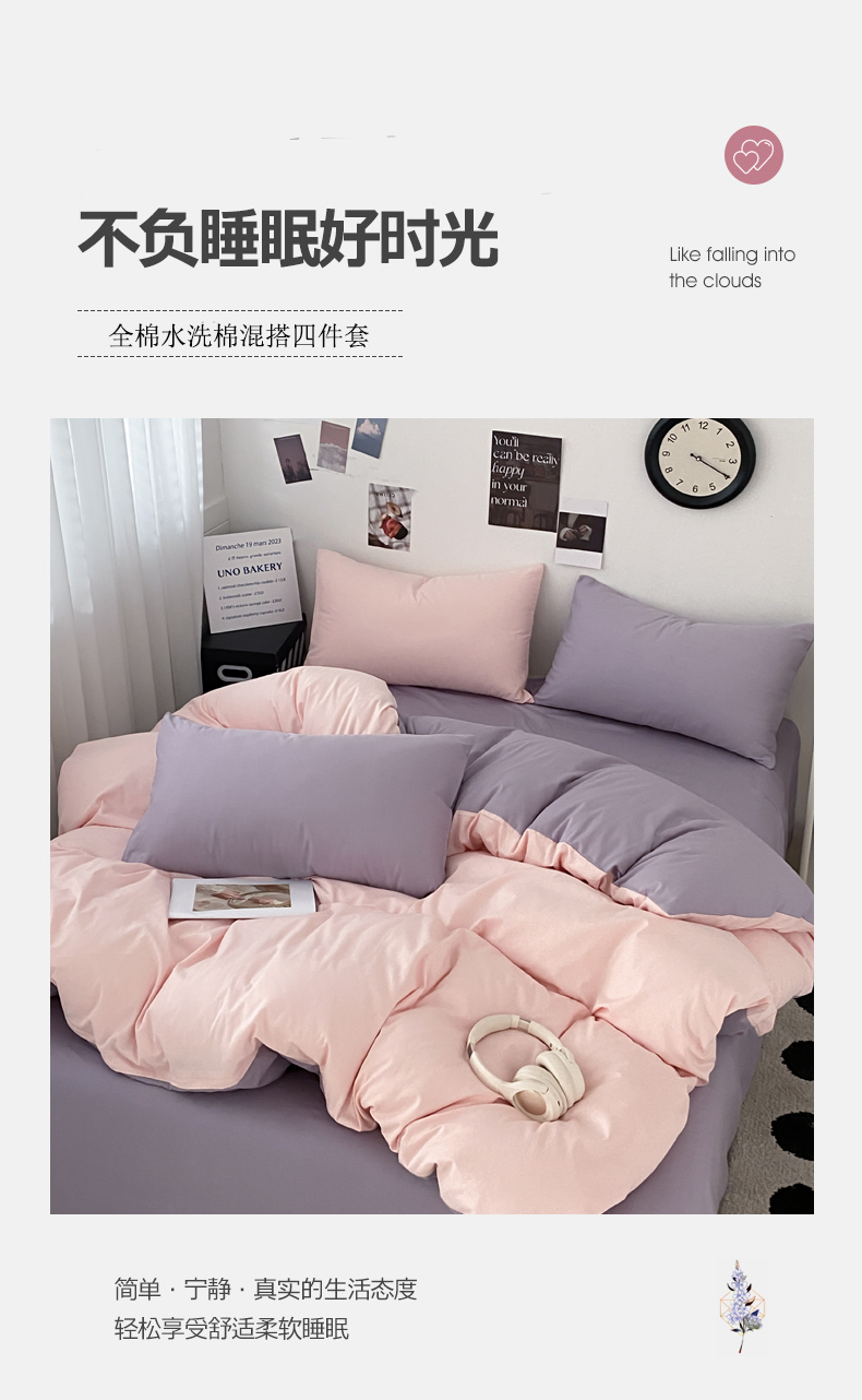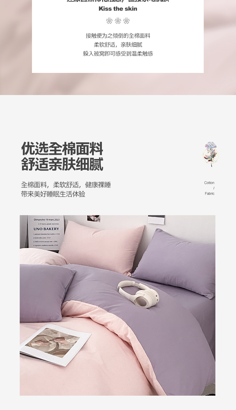 当前位置: 91家纺网 > 商品网购 > 床品套件 > 四件套 > 全棉普通四件套 > 三朵家纺 2024新款春夏13372全棉精梳棉混搭四件套 柔粉