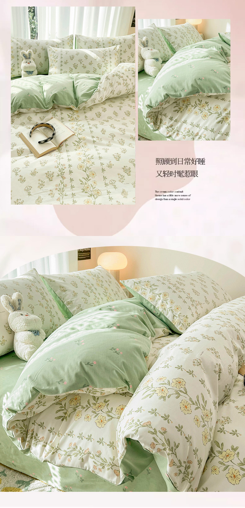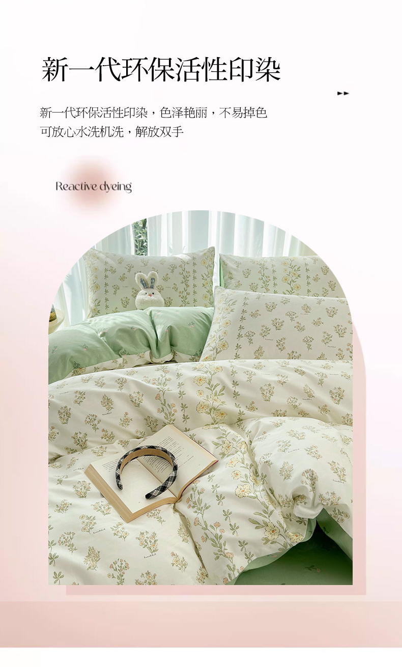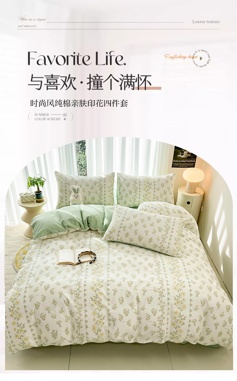 倾慕家纺 2024新款时尚风全棉13070亲肤印花系列四件套 花语时光