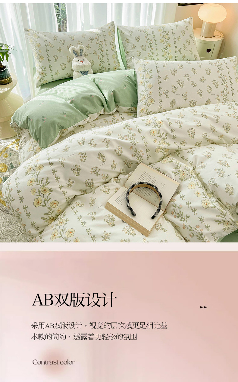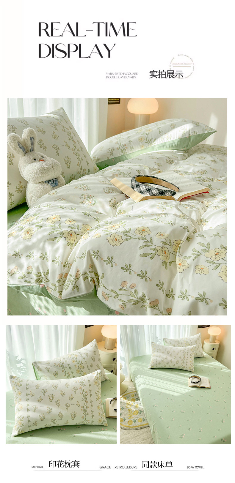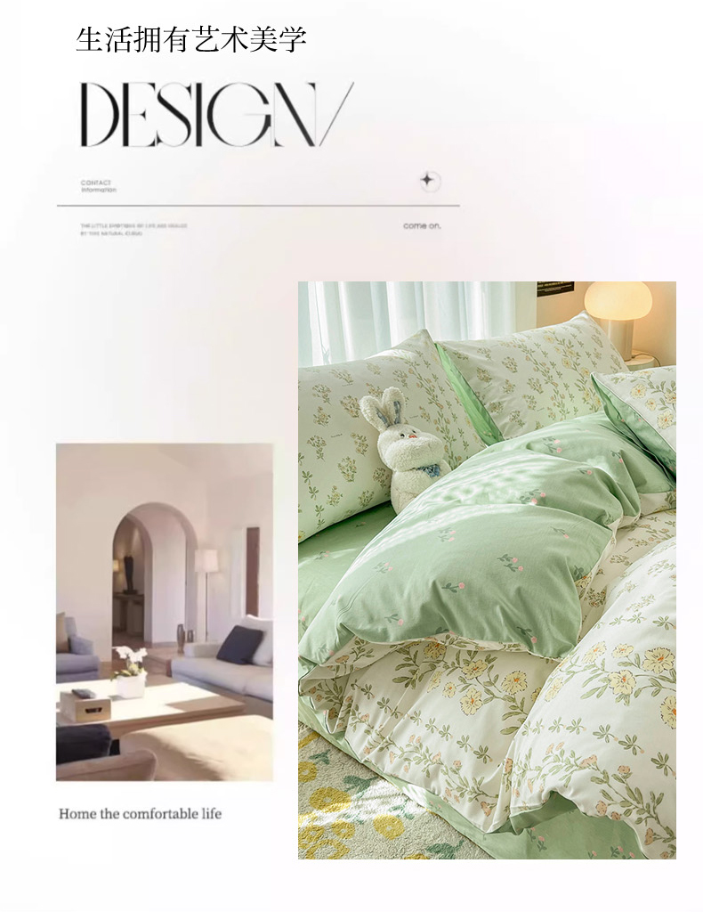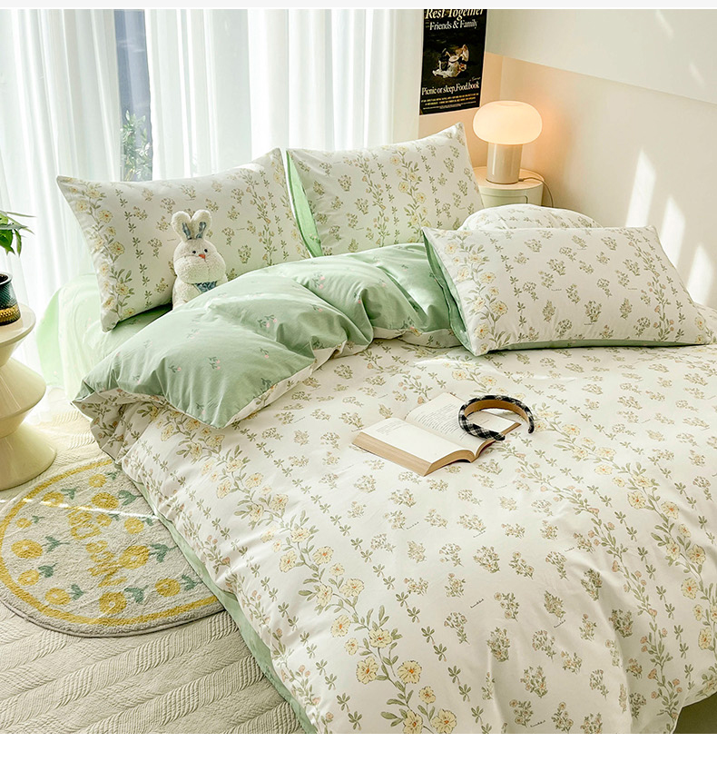 倾慕家纺 2024新款时尚风全棉13070亲肤印花系列四件套 花语时光