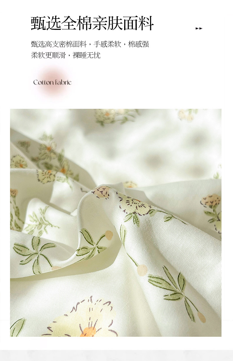 商品名称:倾慕家纺 2024新款时尚风全棉13070亲肤印花系列四件套 花语时光