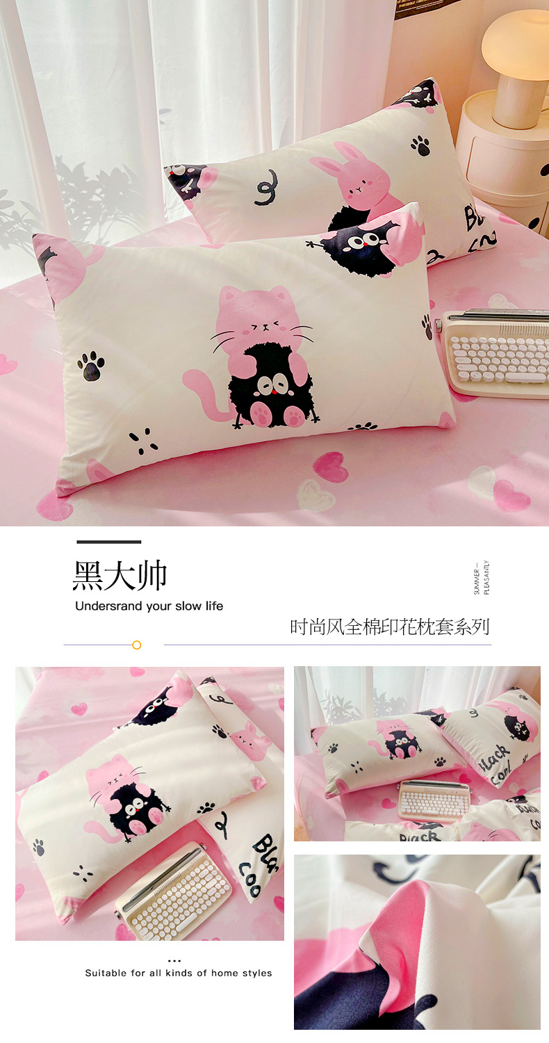商品名称:倾慕家纺 2024新款时尚风全棉13070亲肤印花系列单枕套 黑大帅