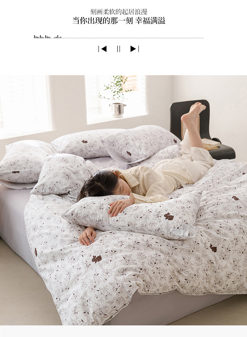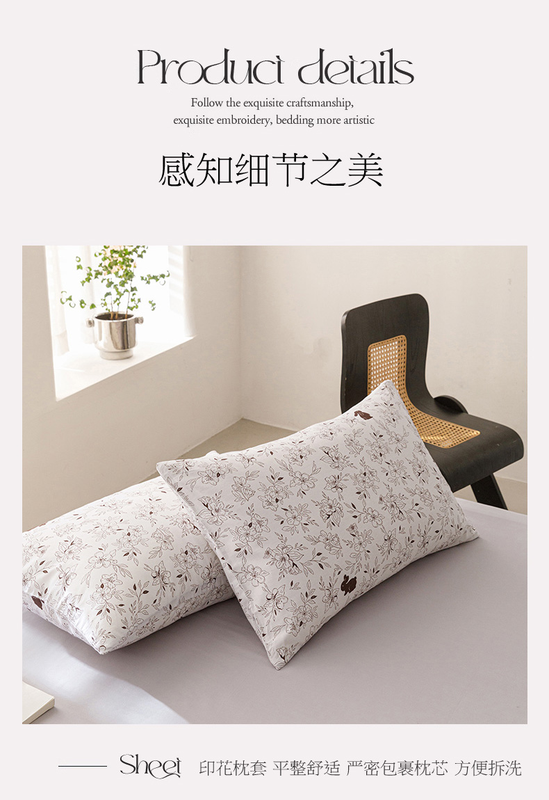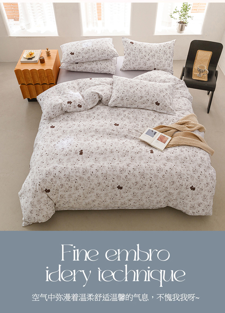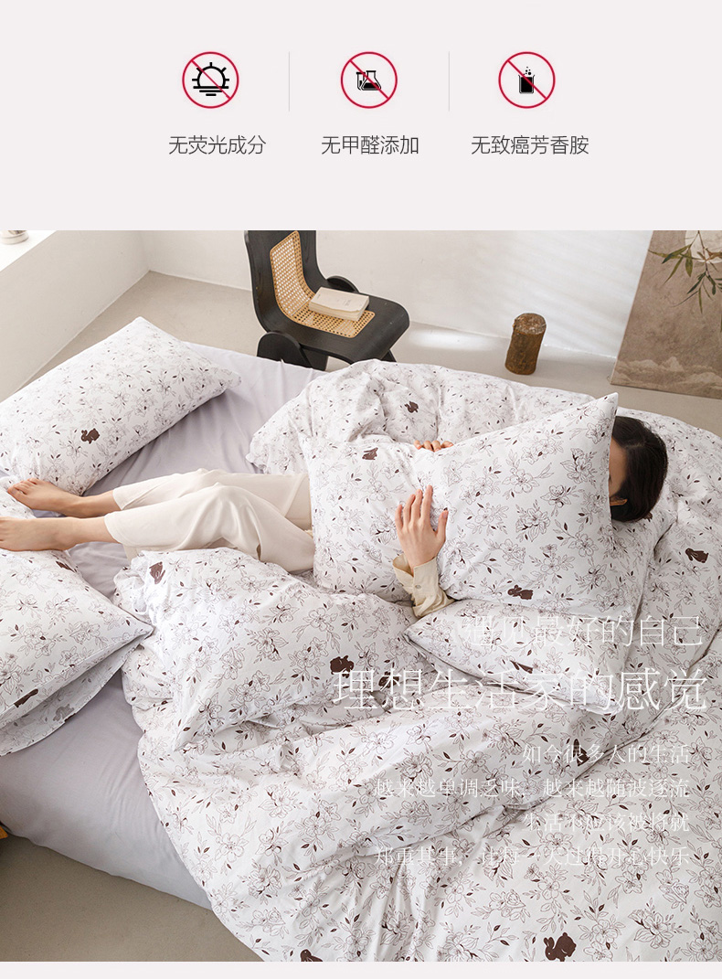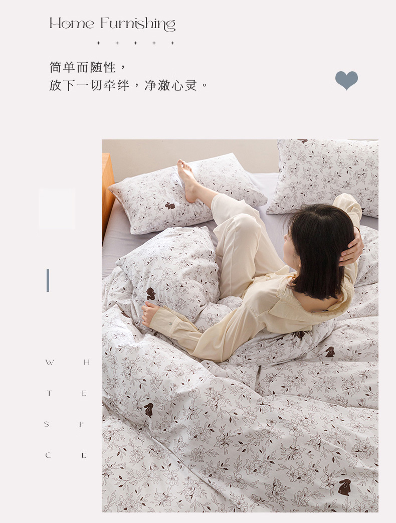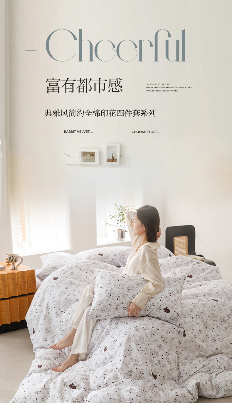 商品名称:倾慕家纺 2024新款典雅风全棉13370简约印花系列四件套 雅秀
