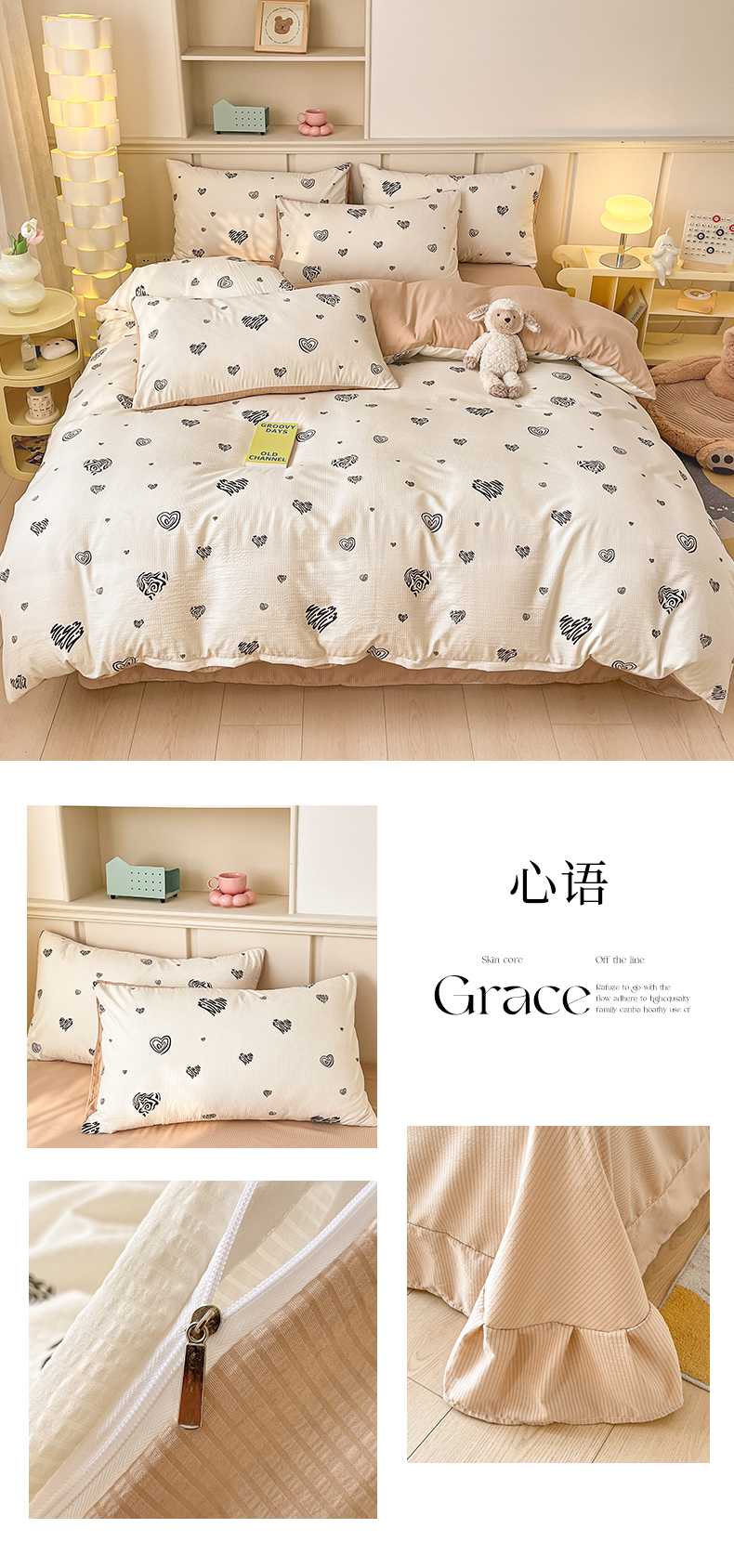 当前位置: 91家纺网 > 商品网购 > 床品套件 > 四件套 > 全棉普通四件套 > 梦之岛 2024新款A类母婴级泡泡棉皱皱纱碎花四件套 心语