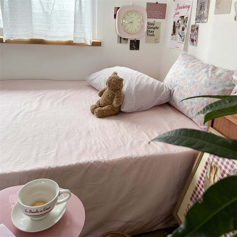 恋恋三季 2024新款全棉单品床笠床单 全棉斜纹-浅粉