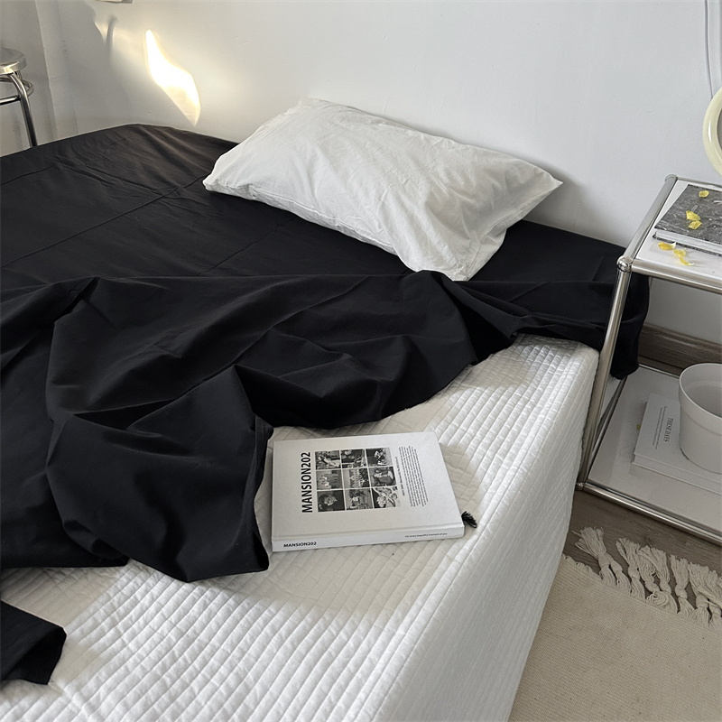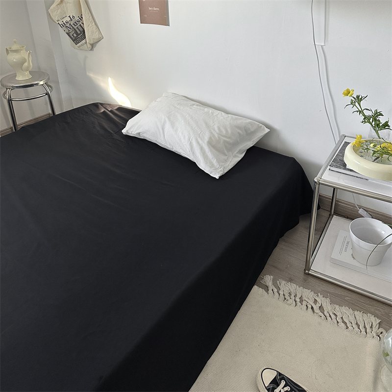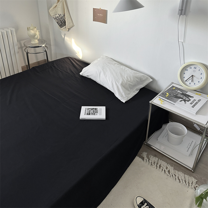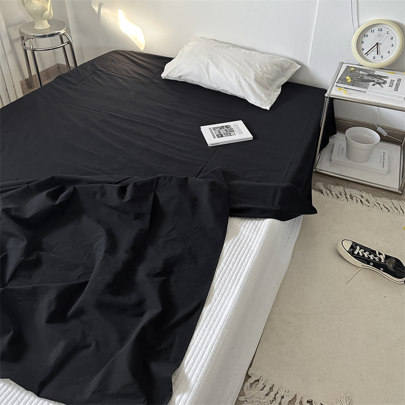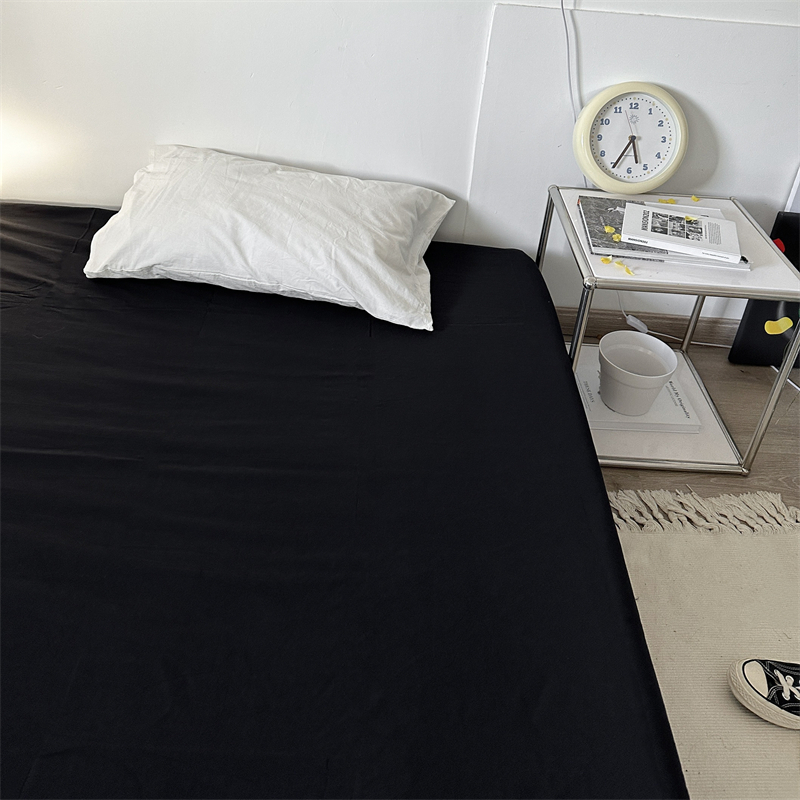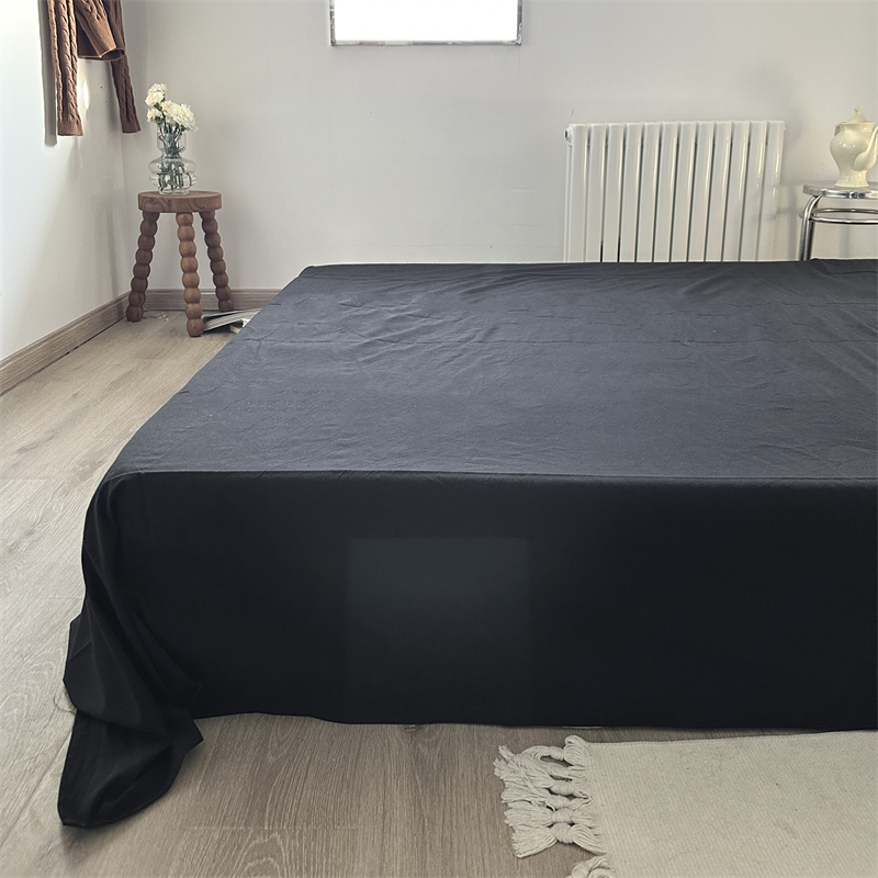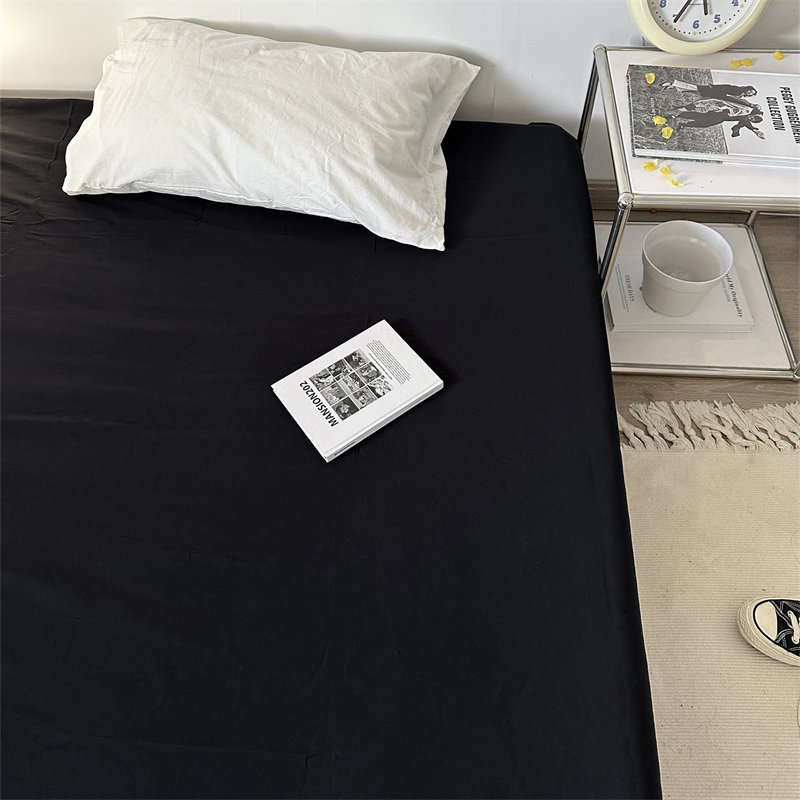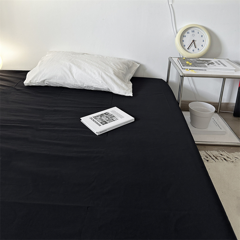 恋恋三季 2024新款全棉单品床笠床单 色织水洗棉-纯黑