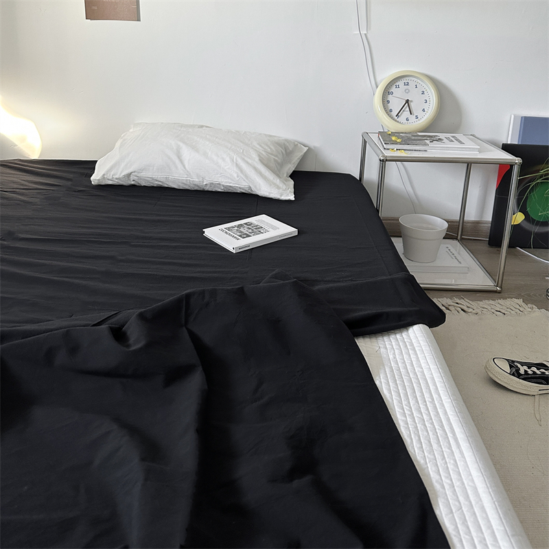 商品名称:恋恋三季 2024新款全棉单品床笠床单 色织水洗棉-纯黑