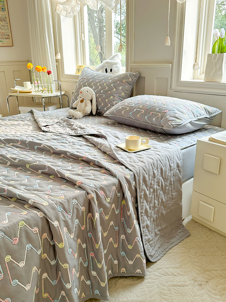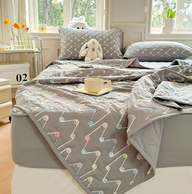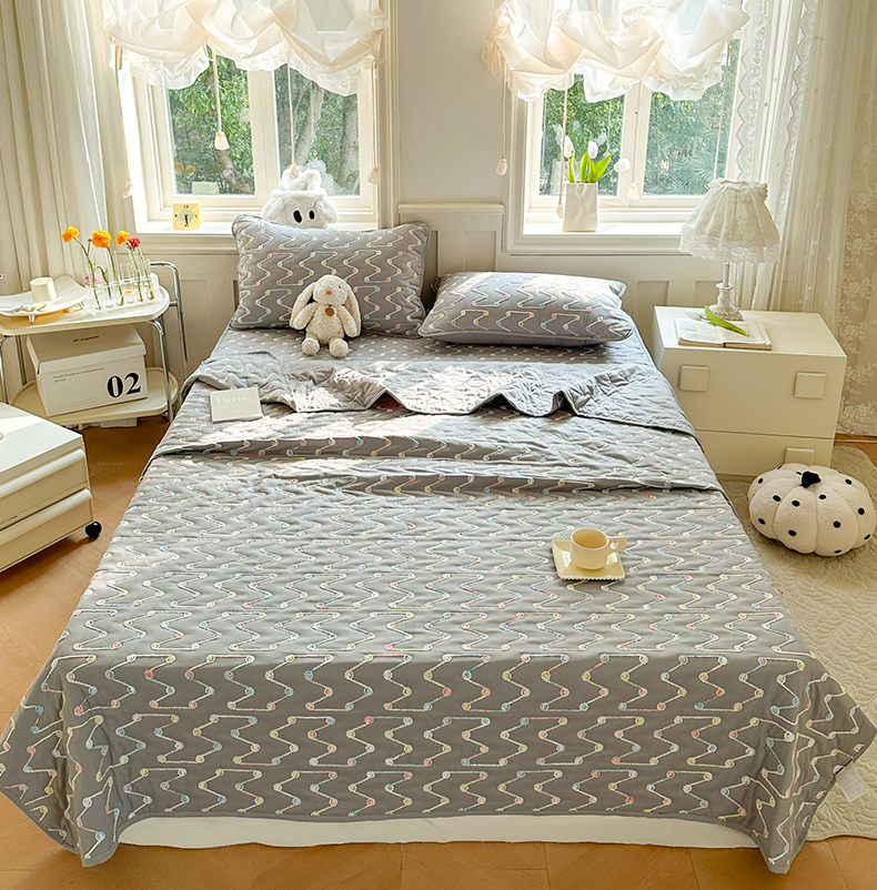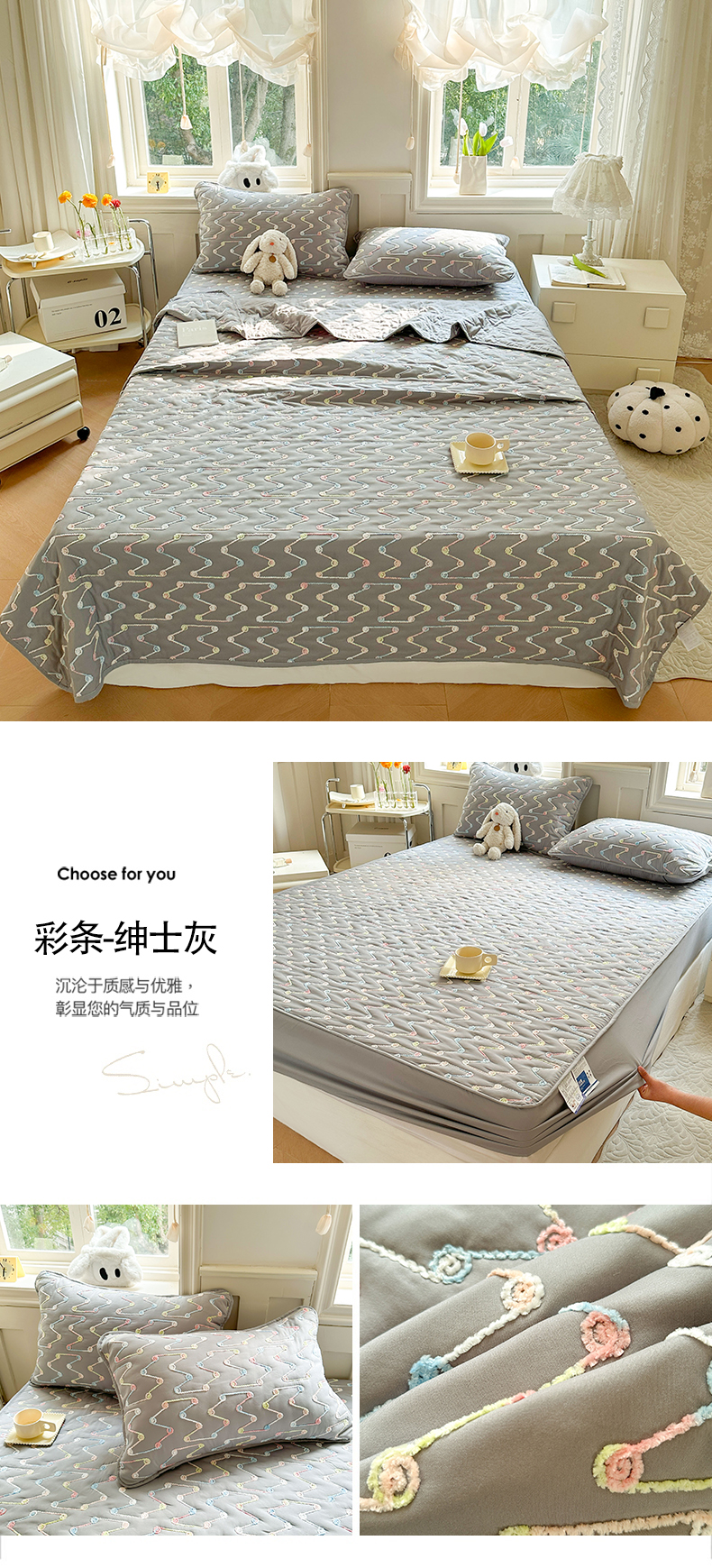 尊康家纺(原磊科) 2024新款亲肤舒适原棉抗菌棉夏被四件套 彩条-绅士灰