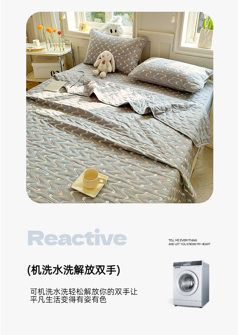 • 91家纺网 家纺一手货源 找家纺 尊康家纺(原磊科) 2024新款亲肤舒适原棉抗菌棉夏被四件套 彩条-绅士灰