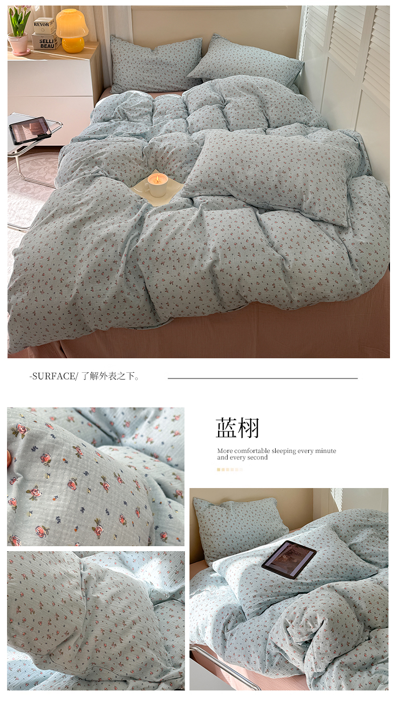 萝莉家纺 2025新款全棉双层皱皱纱四件套 蓝栩