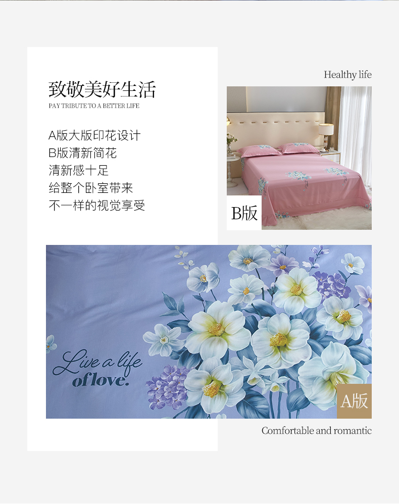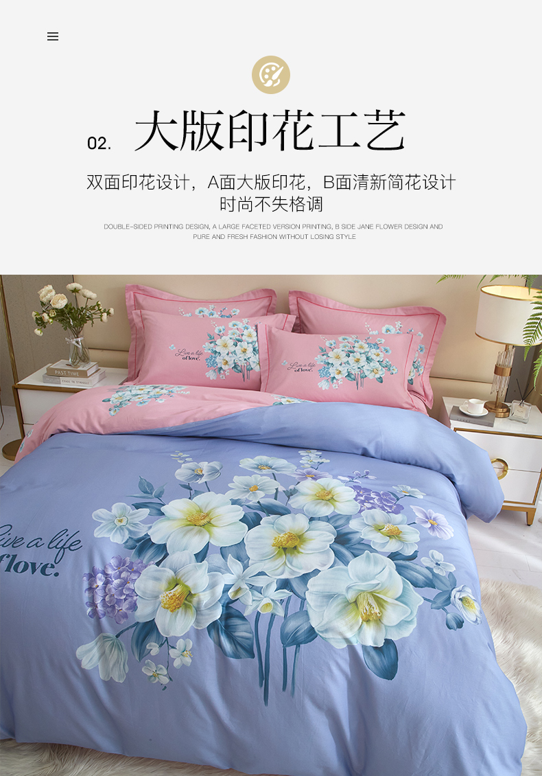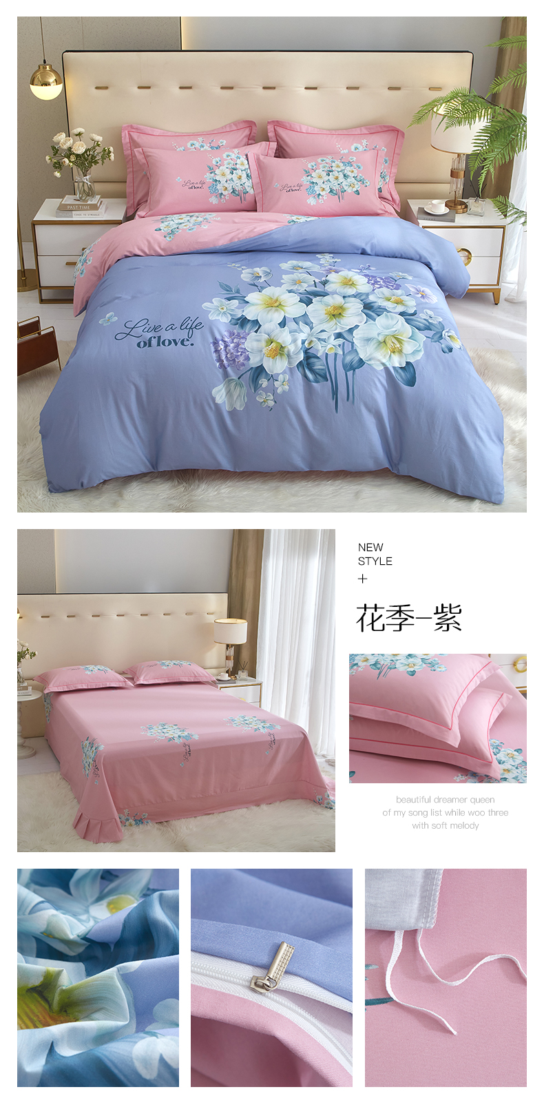 商品名称:格里芬家纺 2025新款全棉大版13372纯棉印花四件套 花季-紫