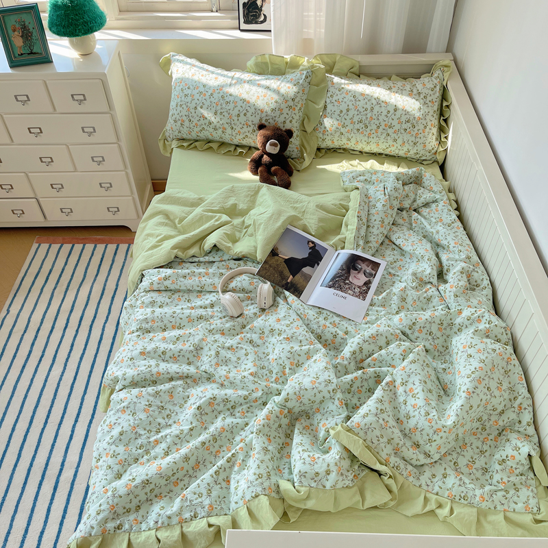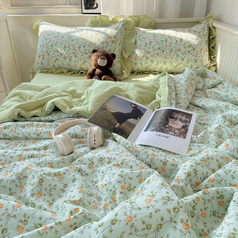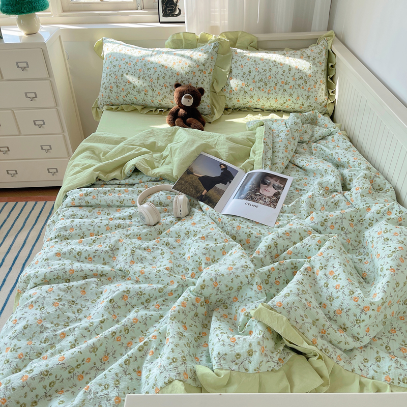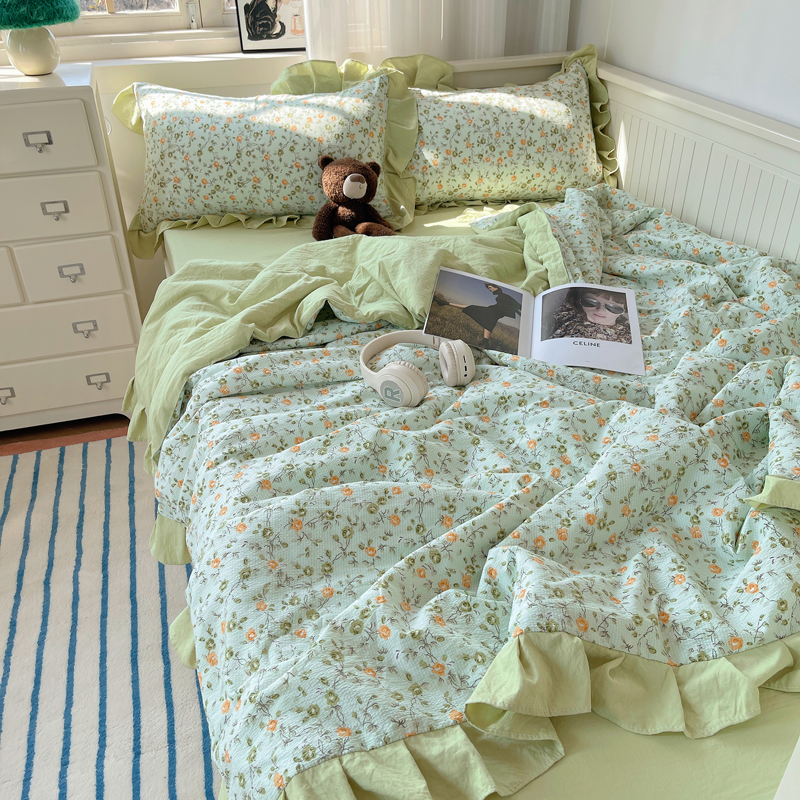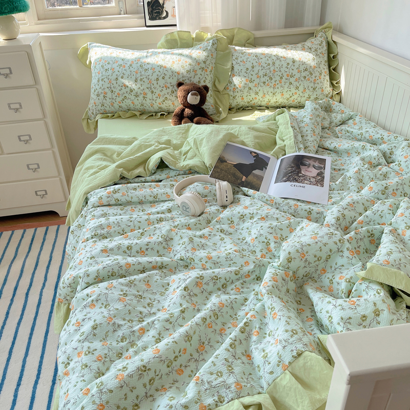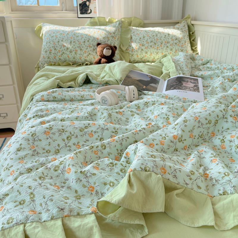 顾里家纺 2024新款韩系治愈小清新花边氧气泡泡棉夏被四件套 春日来信
