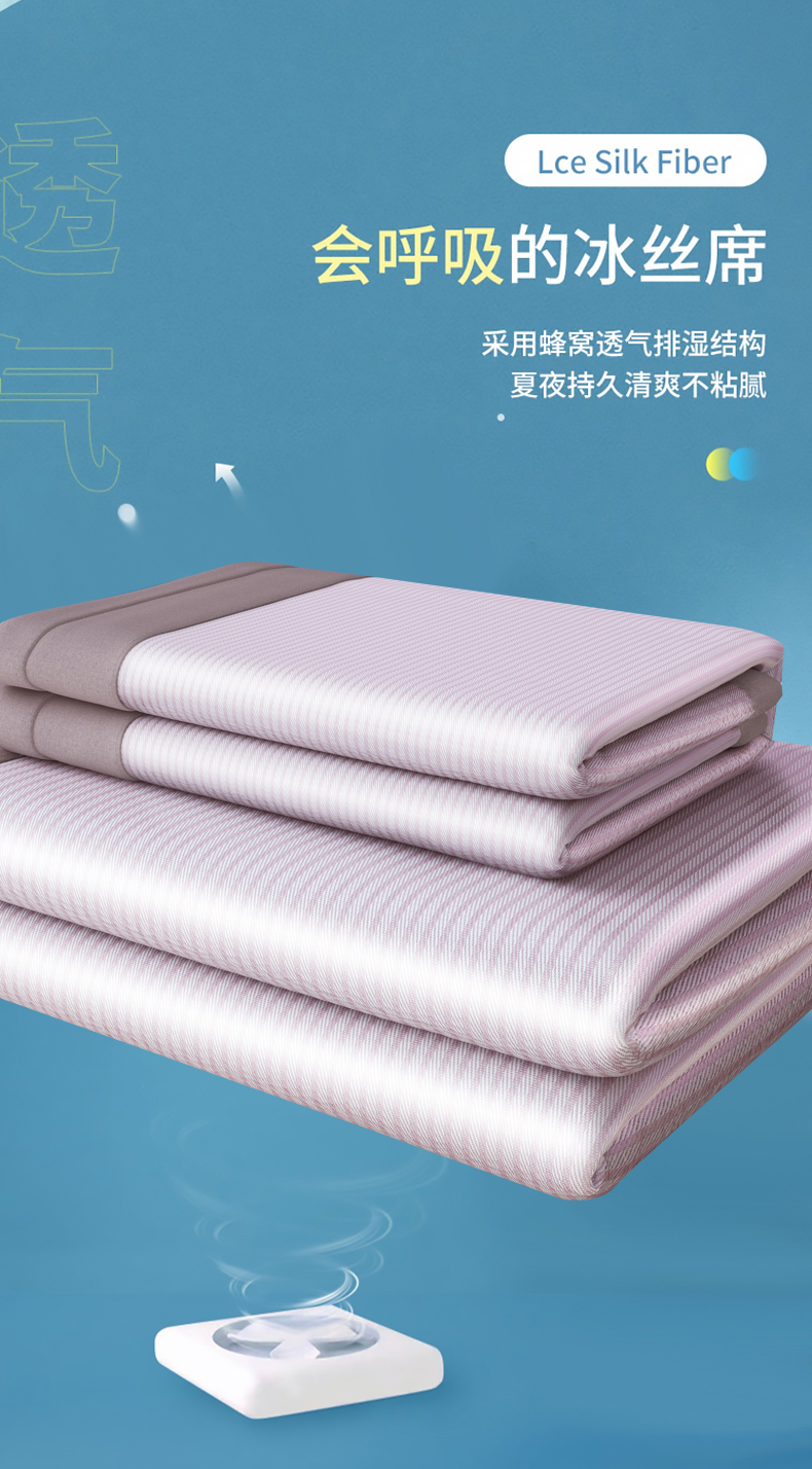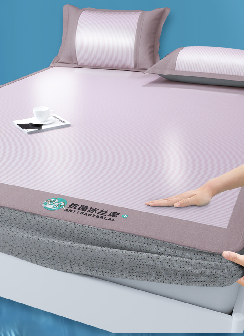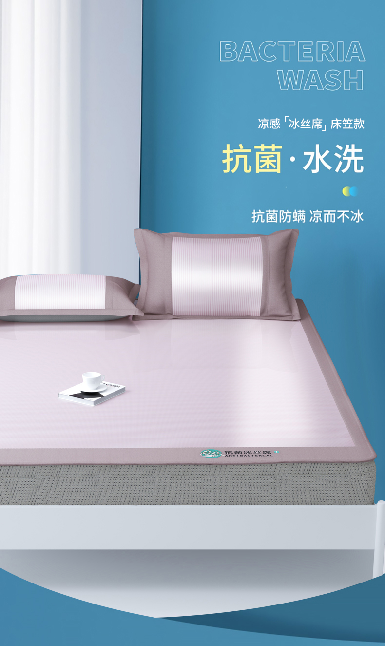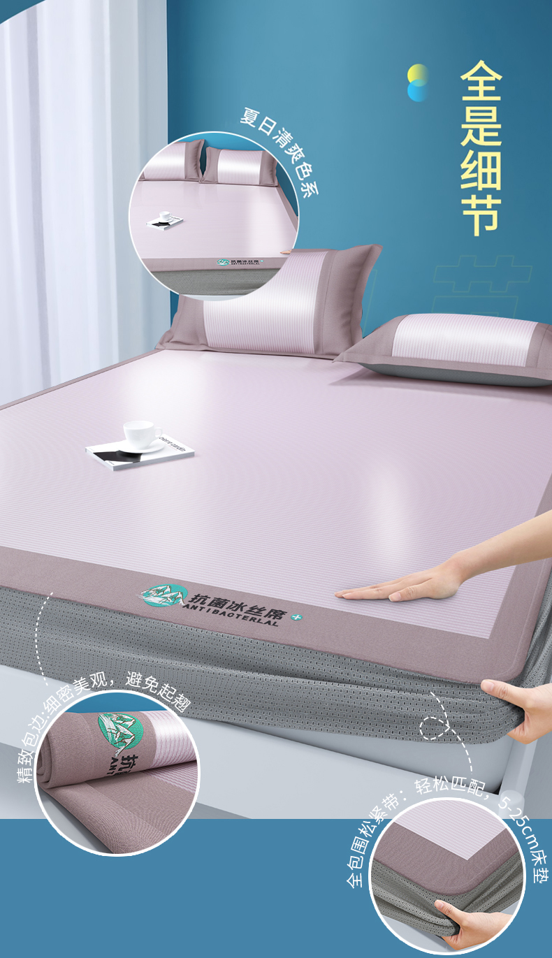 商品名称:yyds 2024新款高端冰丝凉席三件套床笠款软藤席冰丝席空调软席子 床笠款雪山-粉