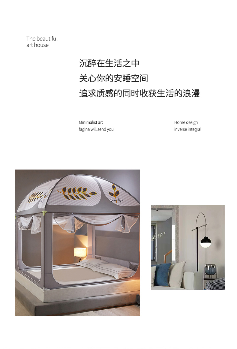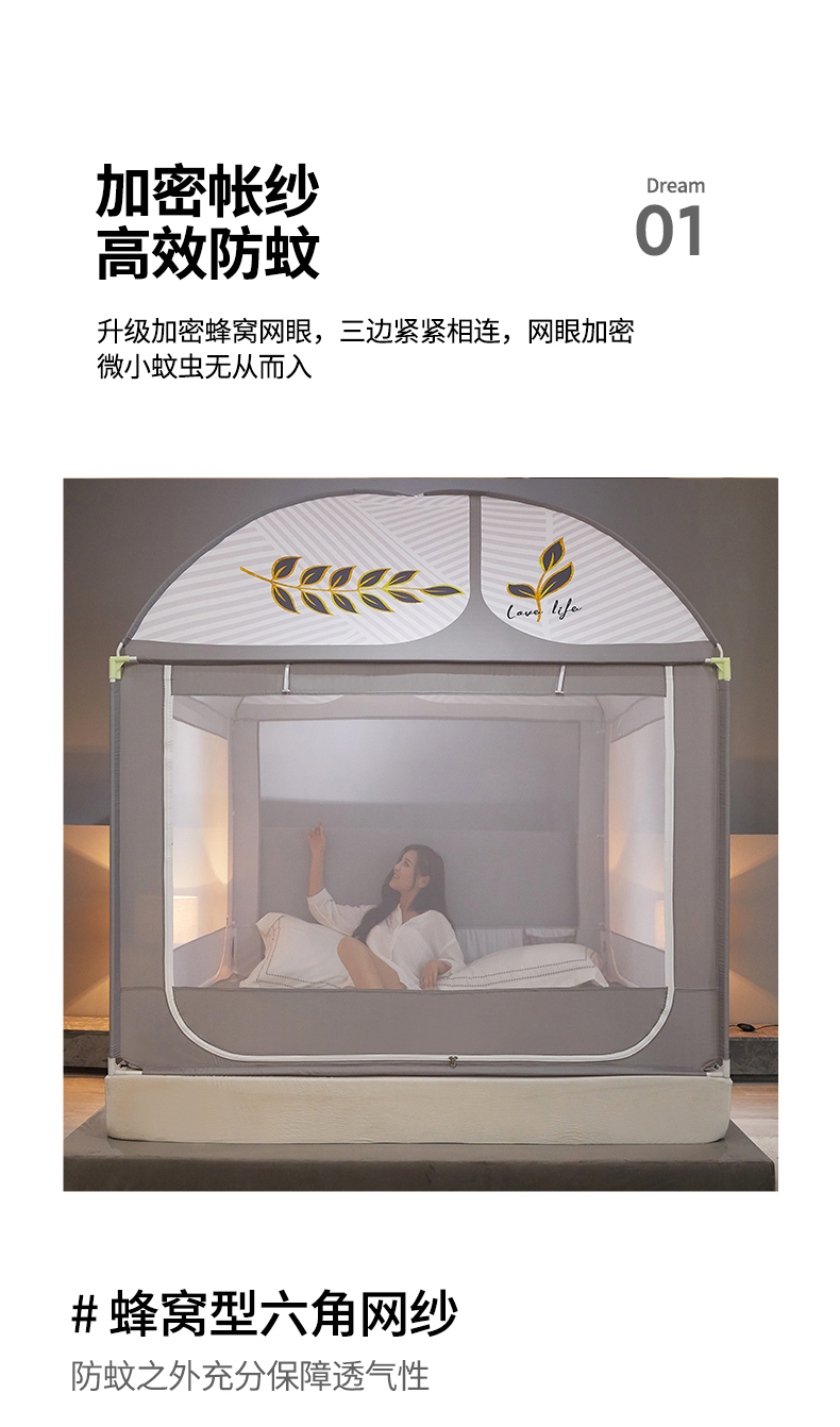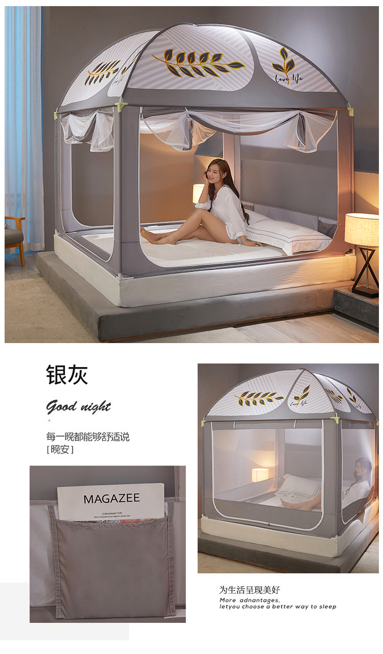 (总)飞轮海蚊帐 2023新款三开门落地遮光蚊帐-L-93,高级灰,芥末绿,奶油黄,香槟