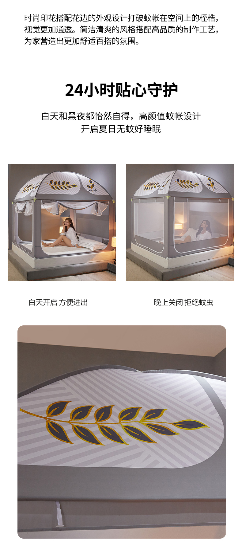 商品名称:飞轮海蚊帐 2024新款三开门防尘蚊帐-MZ-02初夏 银灰