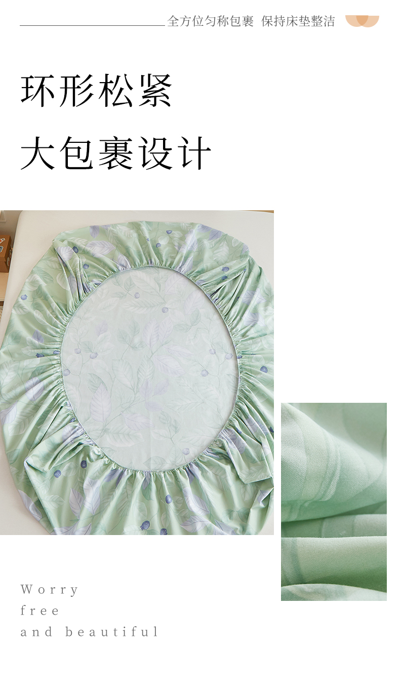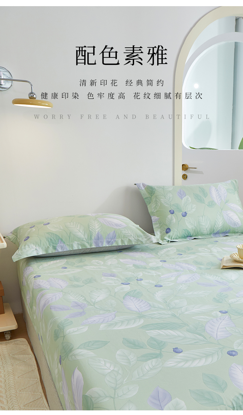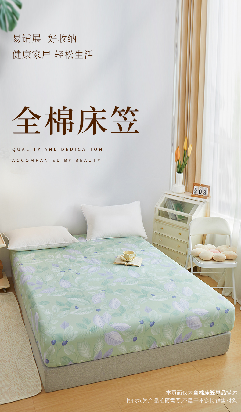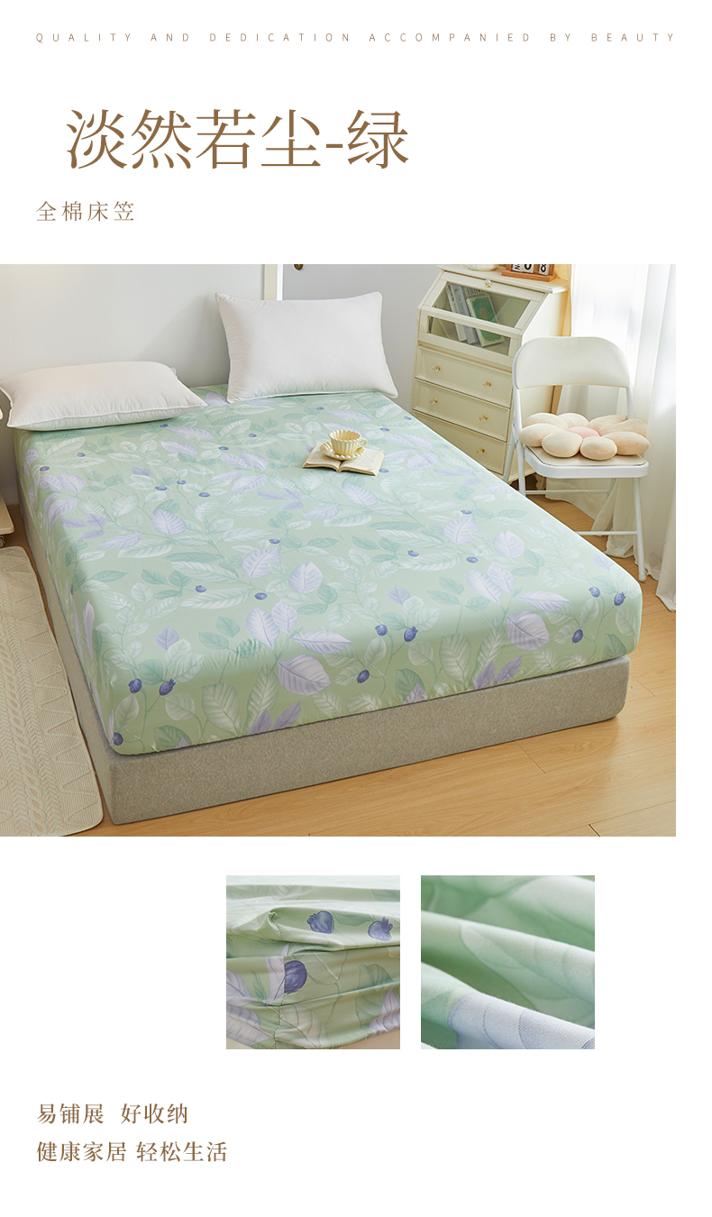 • 91家纺网 家纺一手货源 找家纺 元元被芯 2024新款小清新全棉套件单品-单床笠 淡然若尘-绿