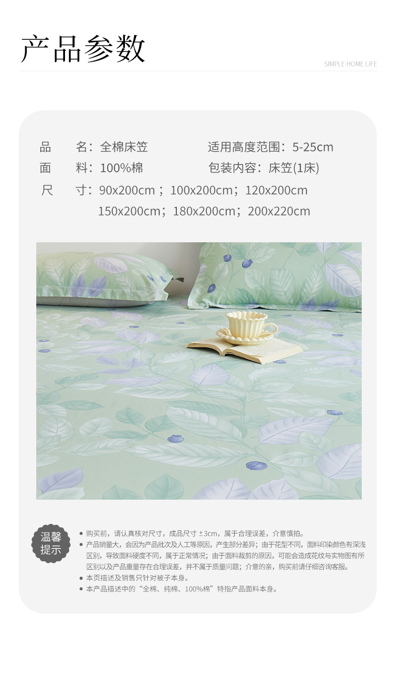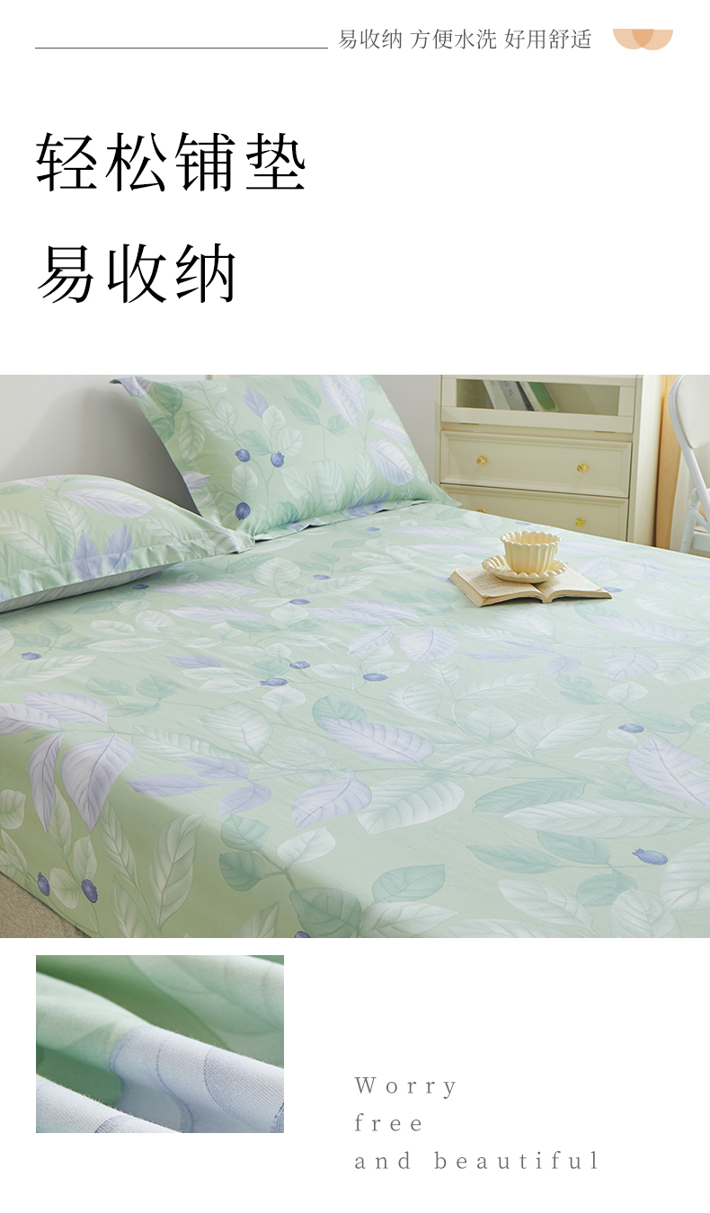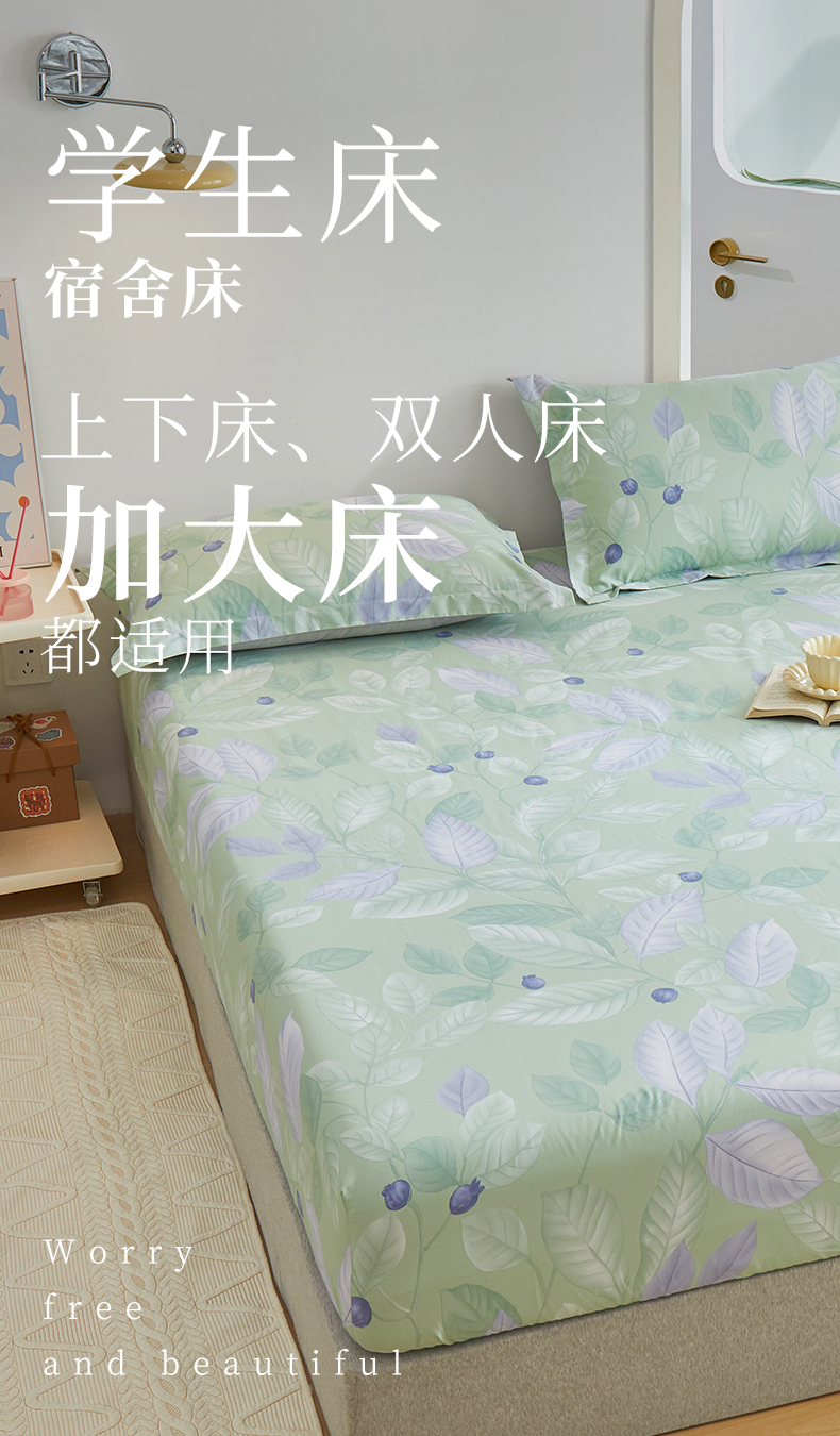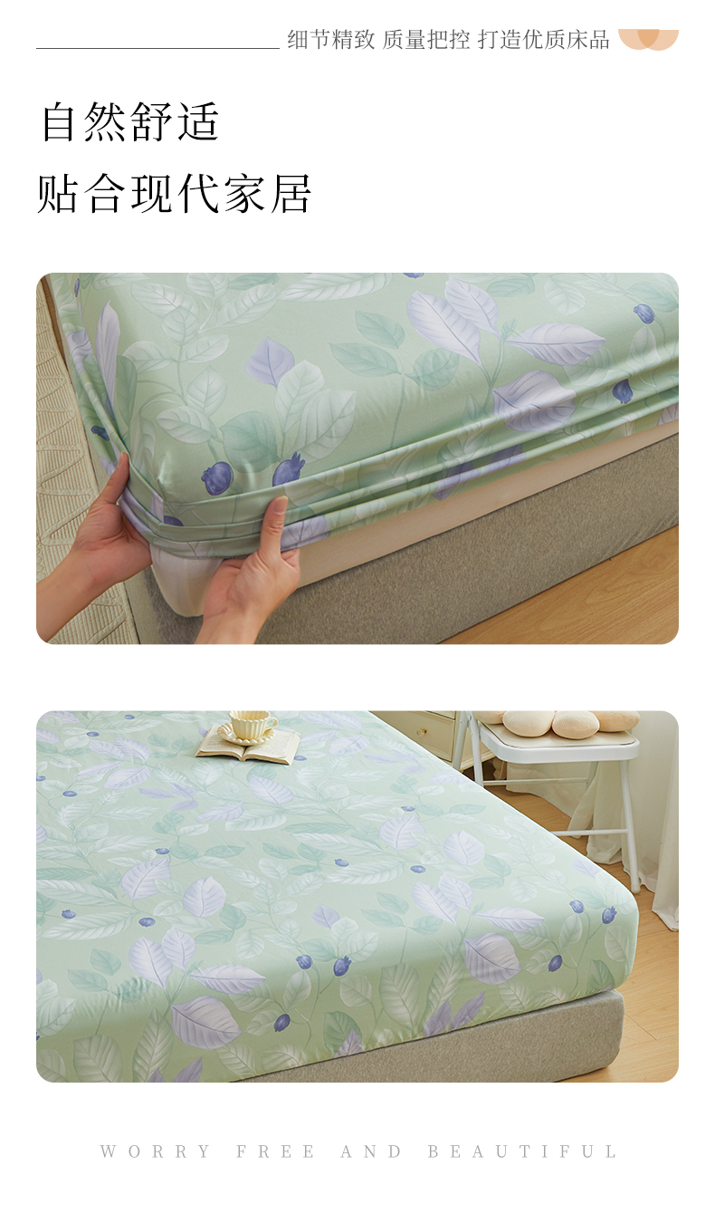 • 91家纺网 家纺一手货源 找家纺 元元被芯 2024新款小清新全棉套件单品-单床笠 淡然若尘-绿