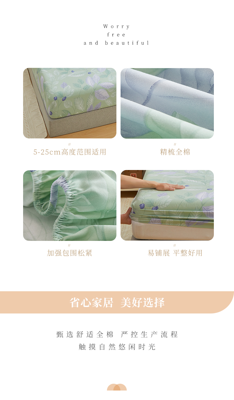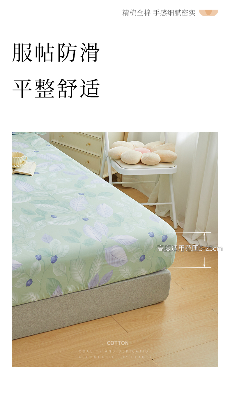 元元被芯 2024新款小清新全棉套件单品-单床笠 淡然若尘-绿