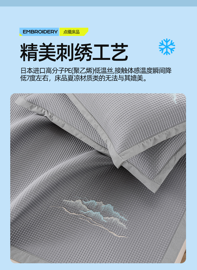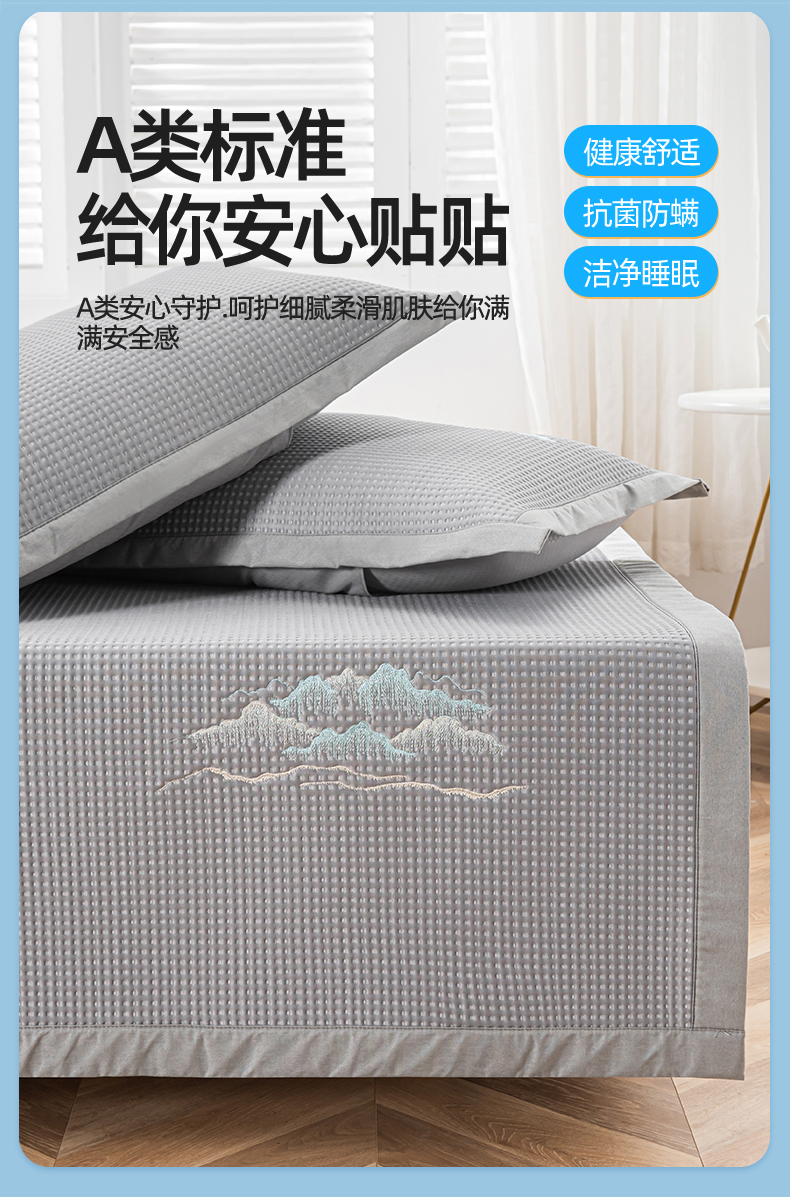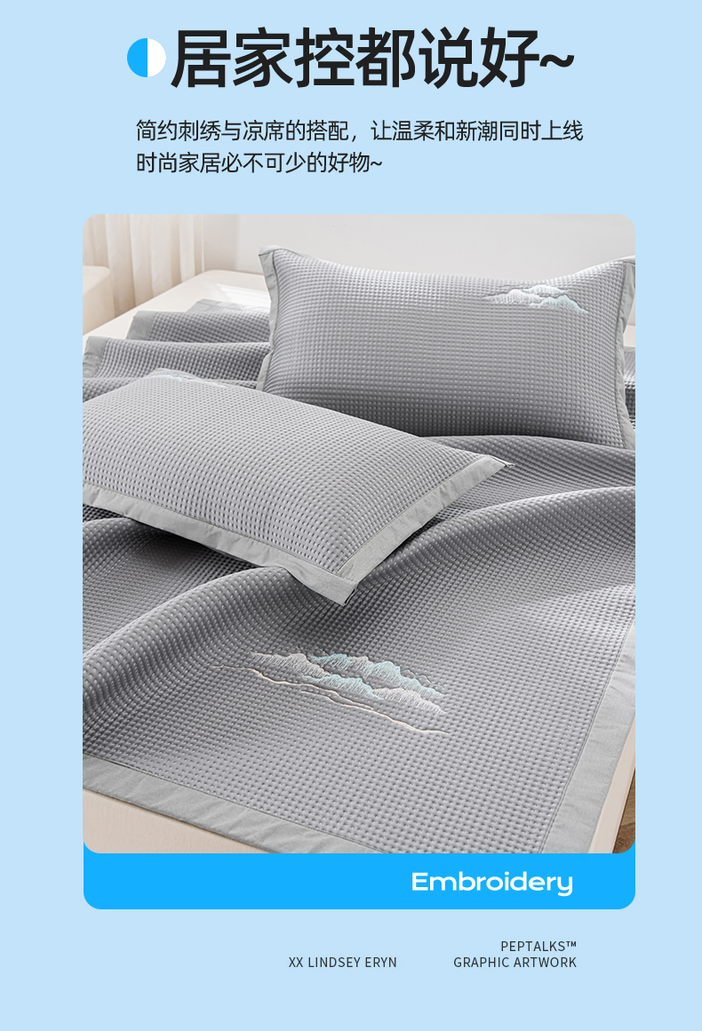 (总)春晓 2024新款A类简约pe刺绣凉感席-江山系列,江山-天空蓝,江山-奶昔白,江山-清新绿,江山-绅士灰,江山-粉豆沙