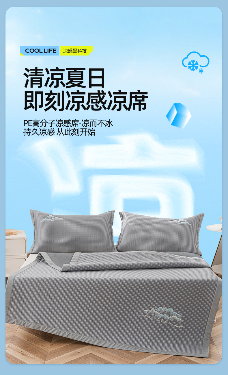 商品名称:春晓 2024新款A类简约pe刺绣凉感席-江山系列 江山-绅士灰