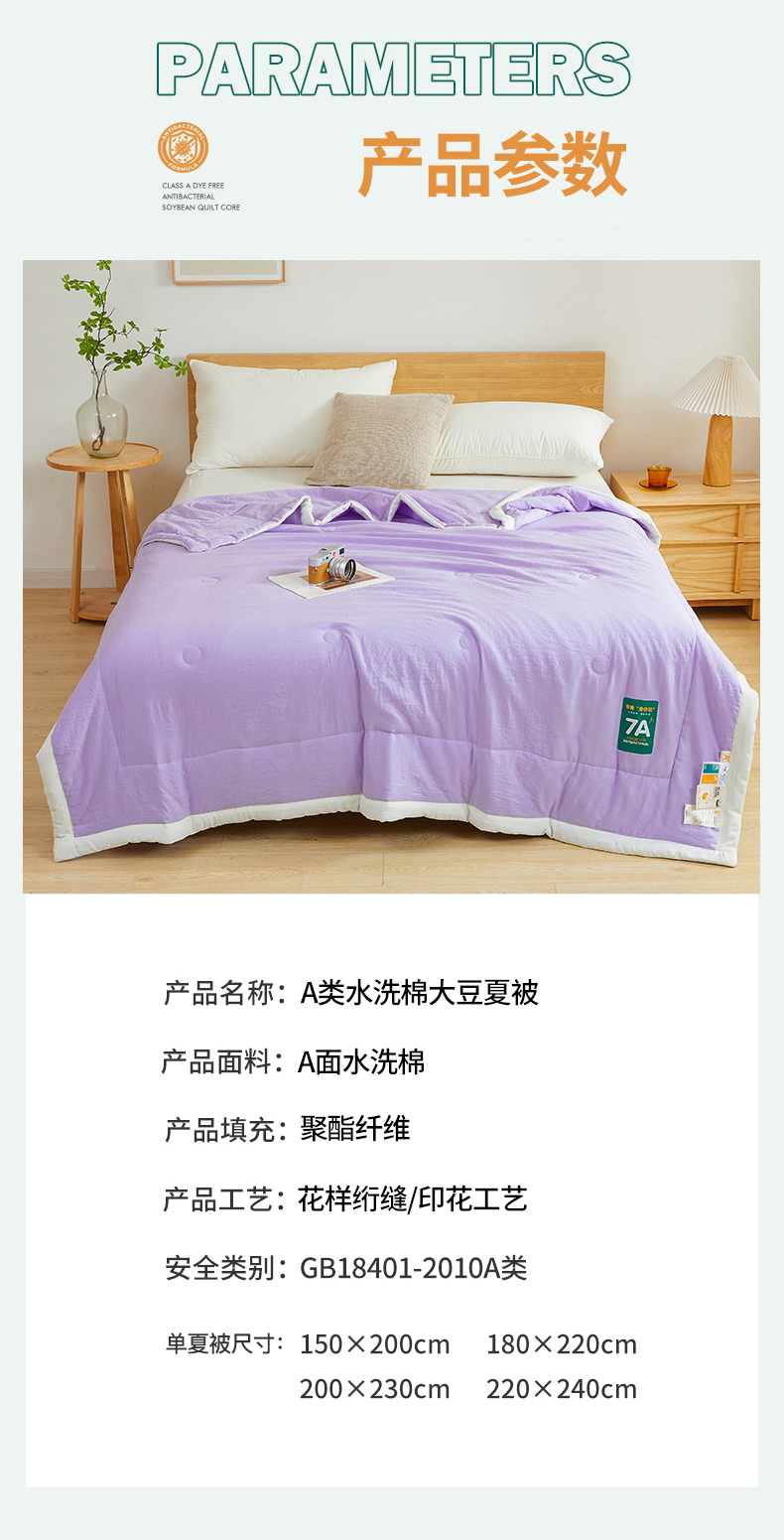商品名称:欢乐季 2025新款7A抗菌原棉大豆夏被夏凉被 香芋紫