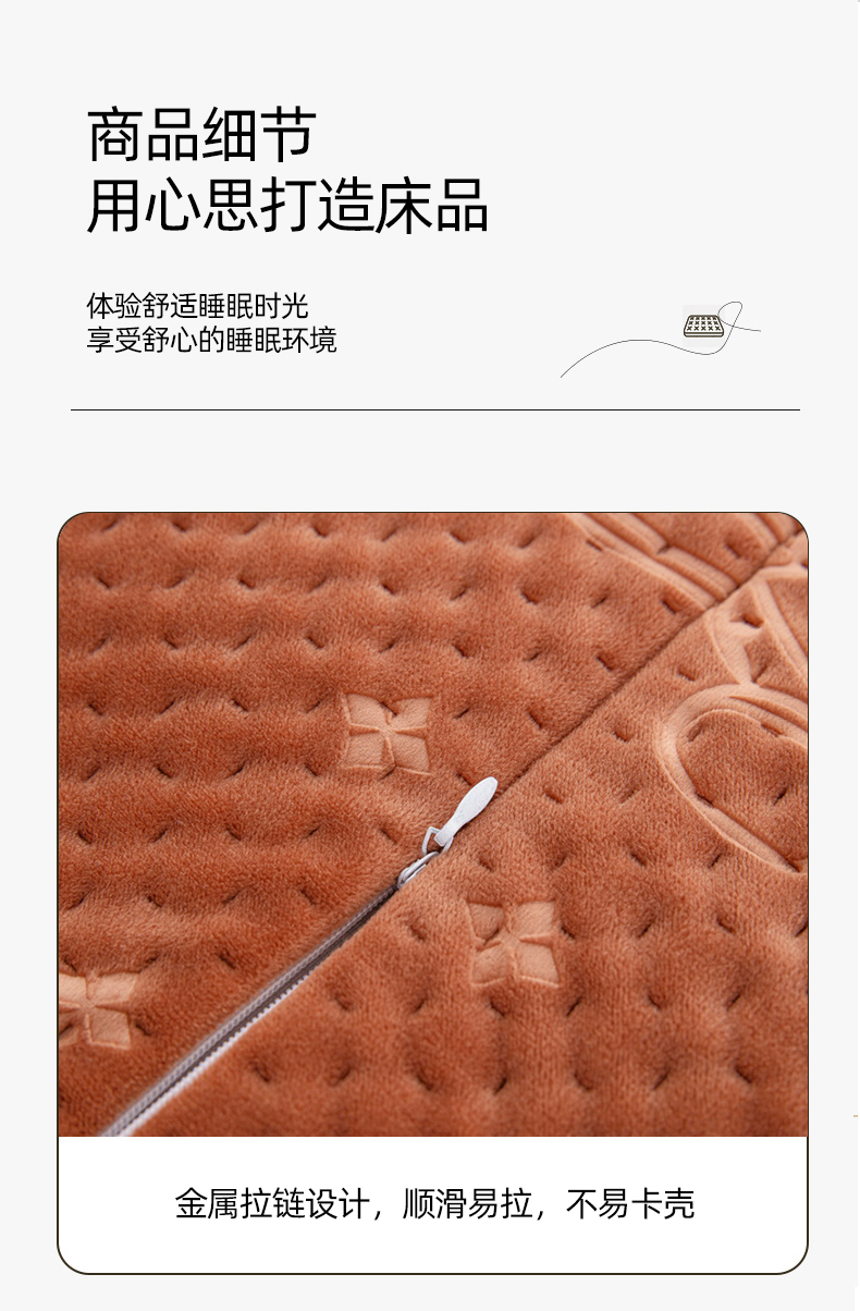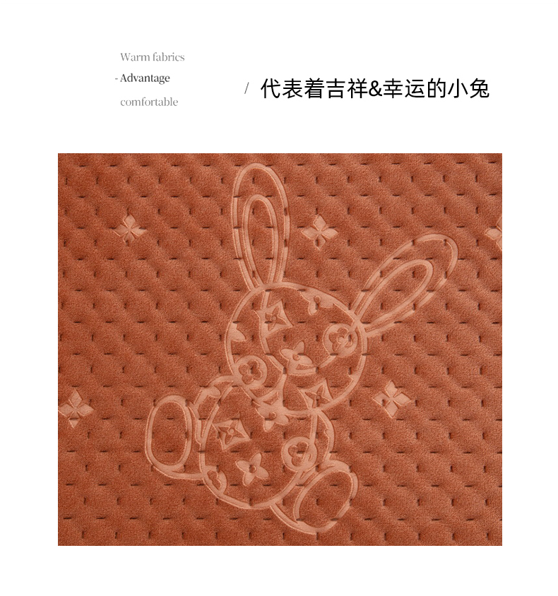 大黄蜂家居家纺 2025新款吉祥兔宝宝绒夹棉秋冬乳胶枕套 经典咖