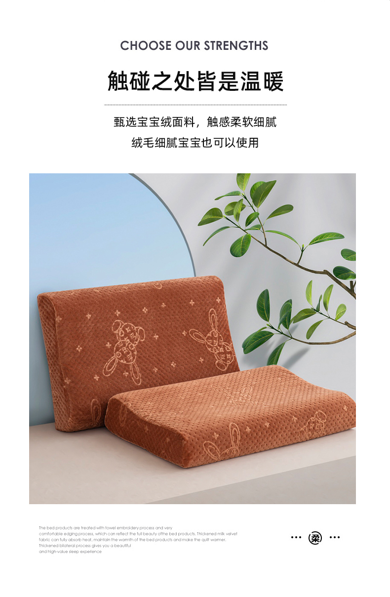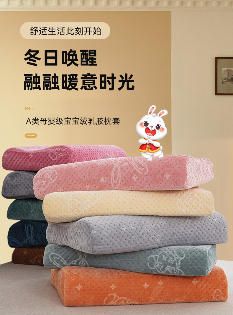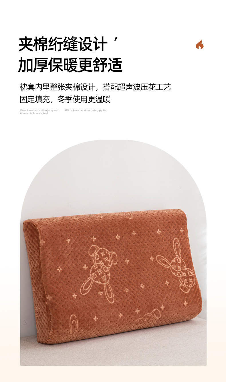 商品名称:大黄蜂家居家纺 2025新款吉祥兔宝宝绒夹棉秋冬乳胶枕套 经典咖