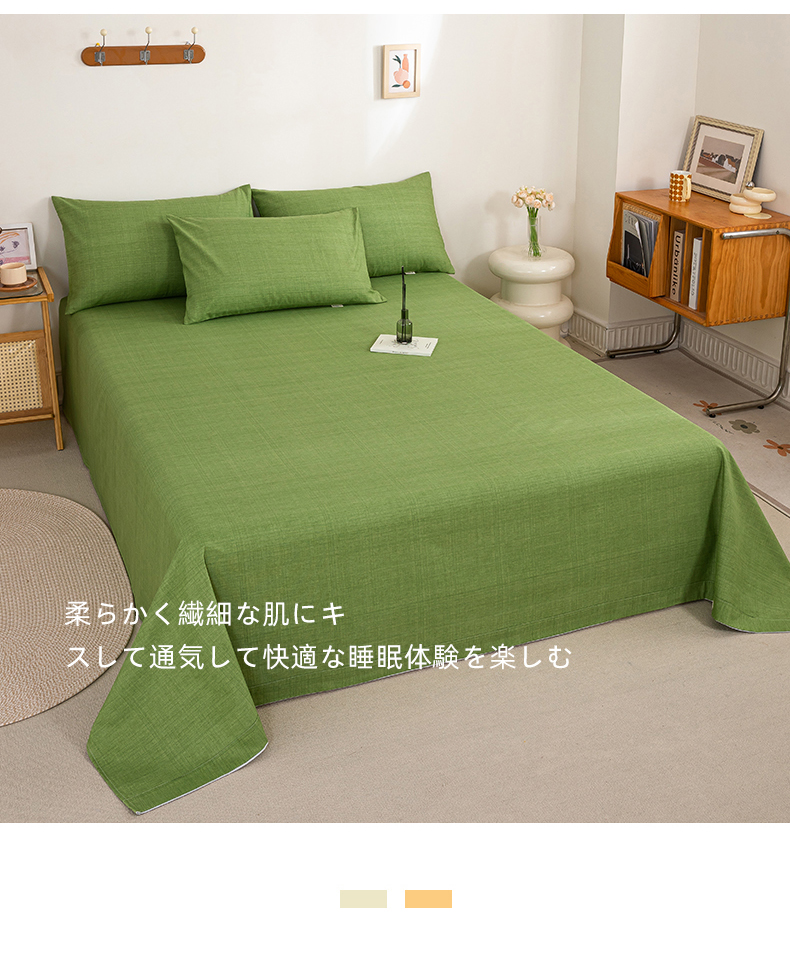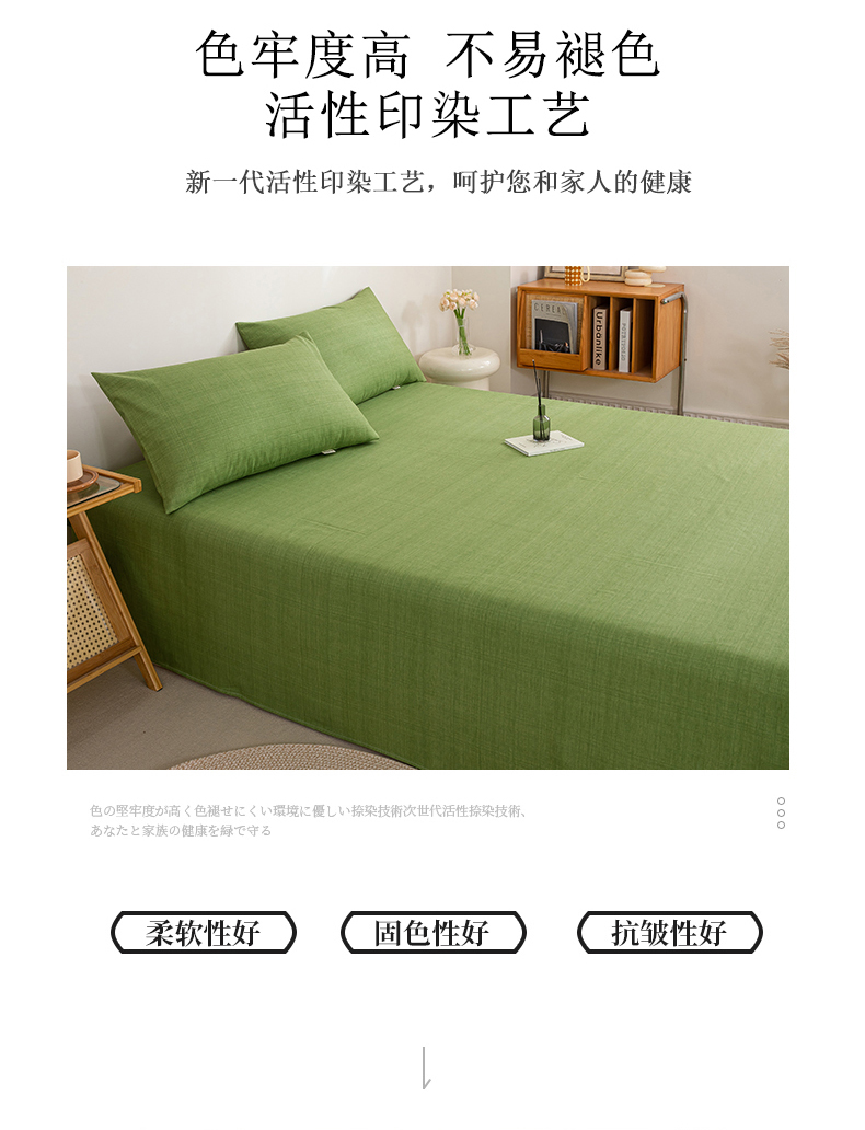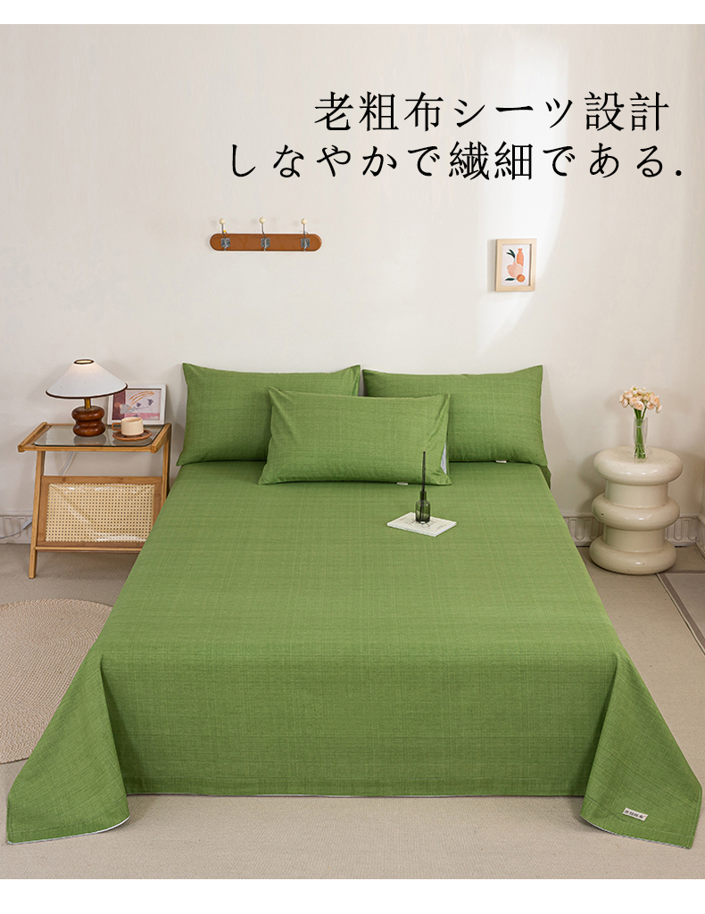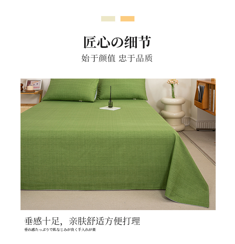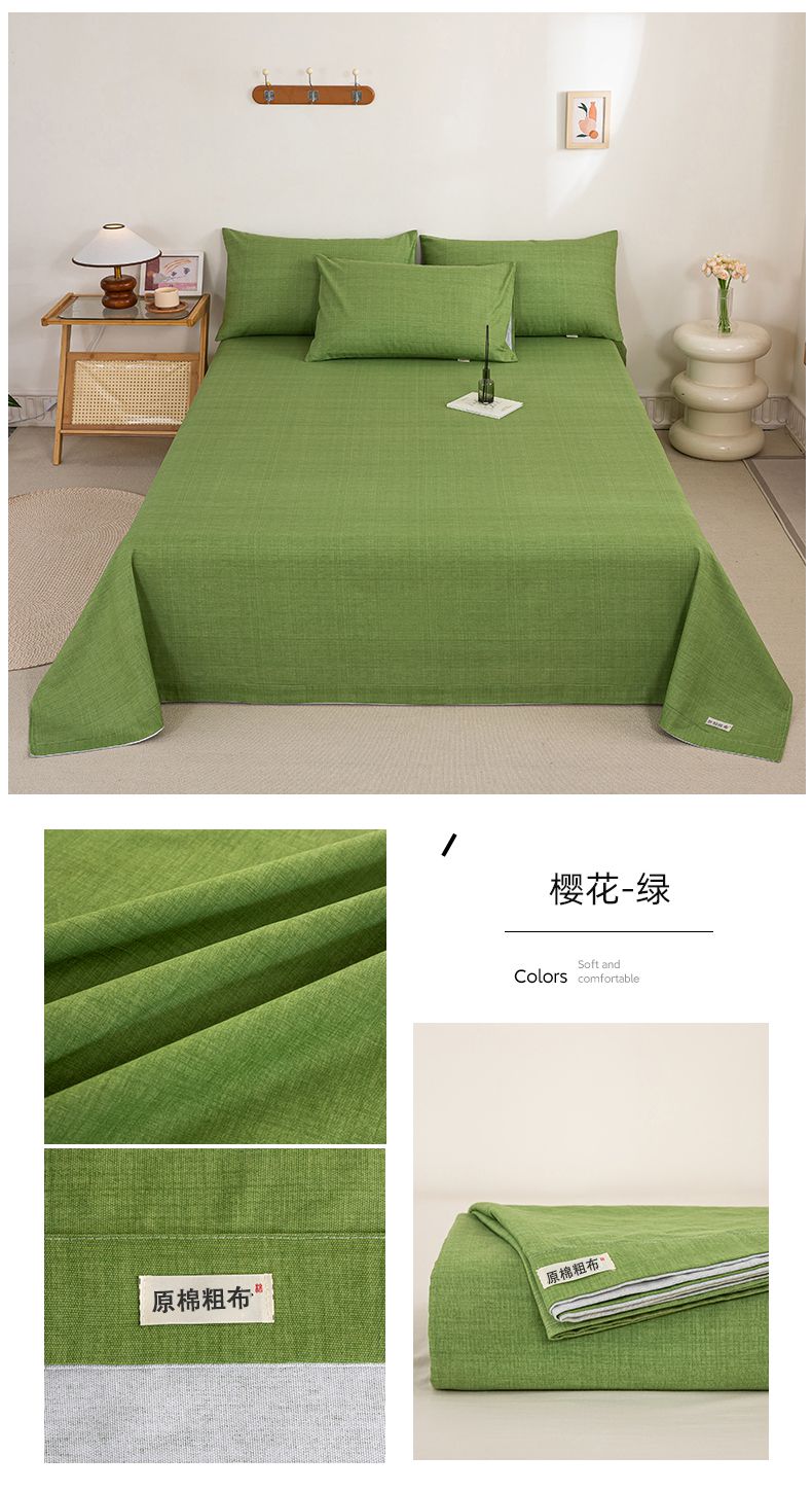 • 91家纺网 家纺一手货源 找家纺 九沐良品 新款全棉无印老粗布单品床单+三件套 樱花-绿