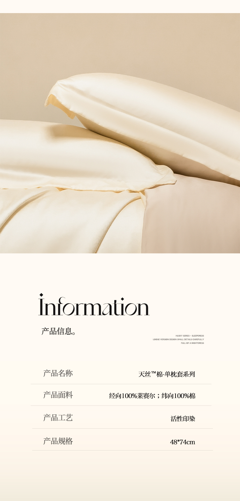 商品名称:涵宸 2024新款兰精天丝棉纯色单品-枕套 枕套-象牙白