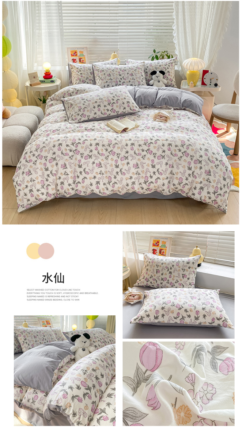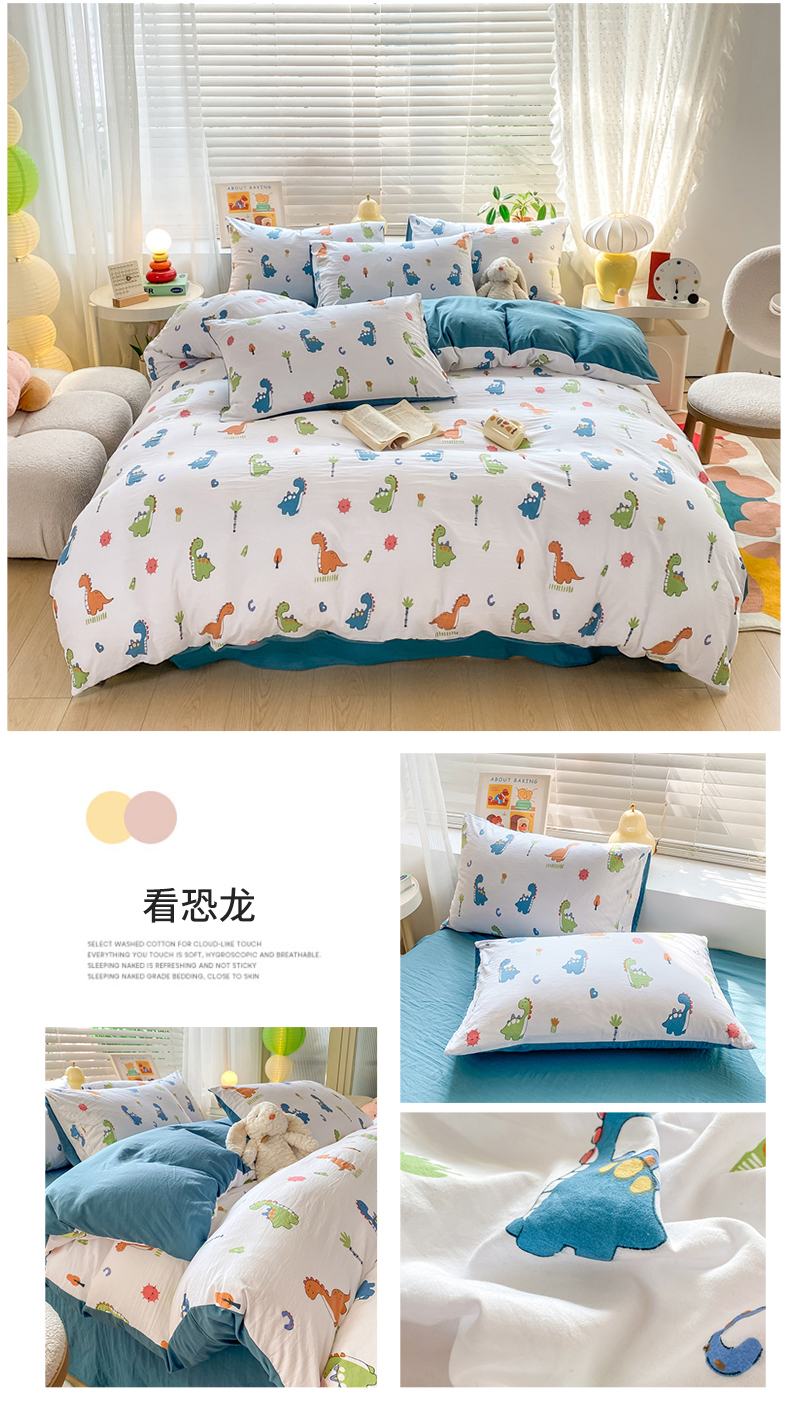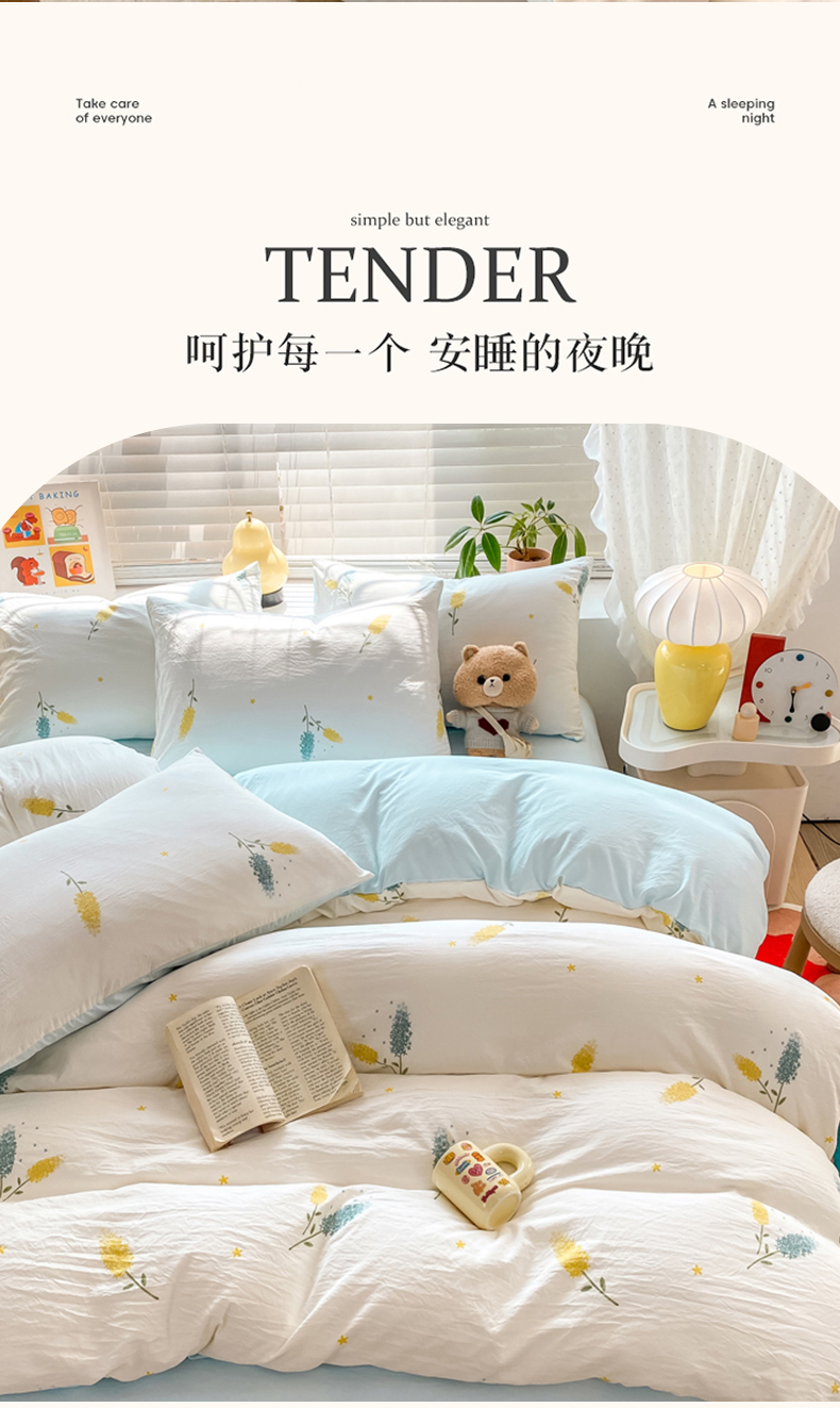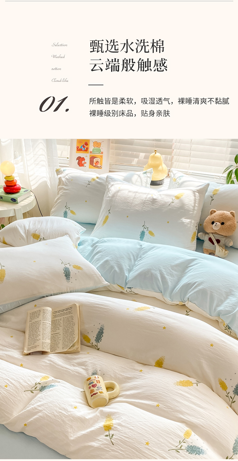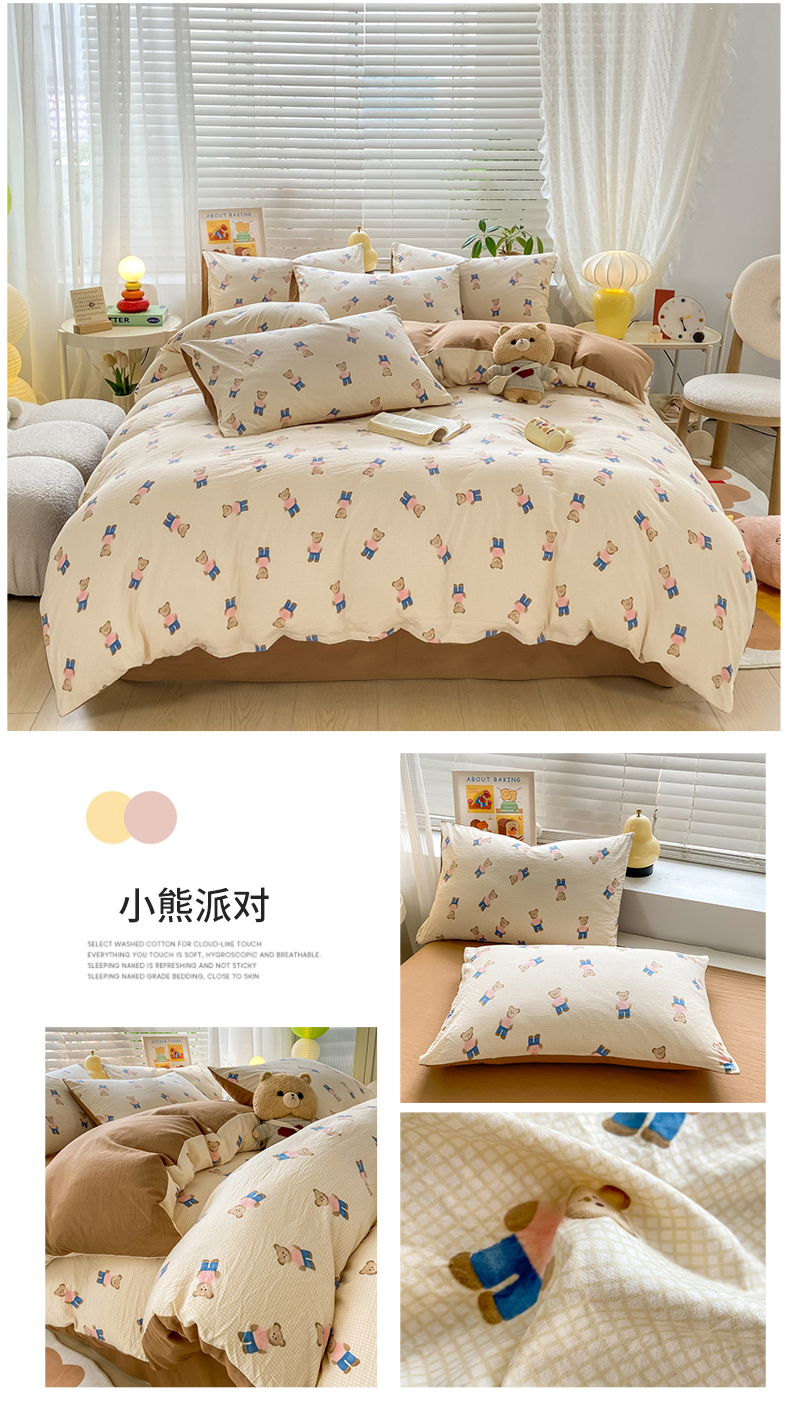 (总)漫仙阁家纺 2025新品云朵棉可爱风卡通烫画单床笠枕套三件套,小浣熊,邻家女孩,小青蛙,兔小姐,花仙子,狗狗家族