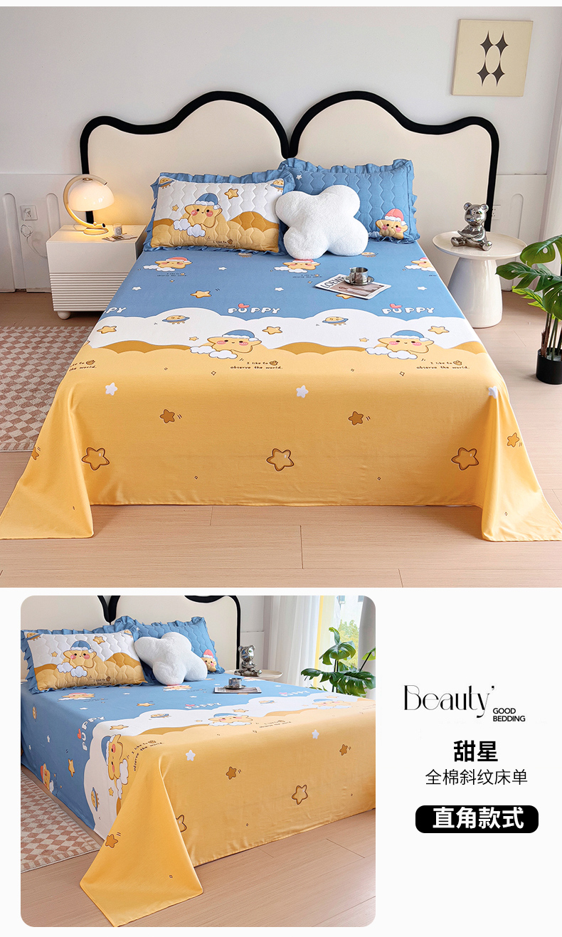 情煊家纺 2024新款全棉斜纹直角床单系列-印花款 甜星