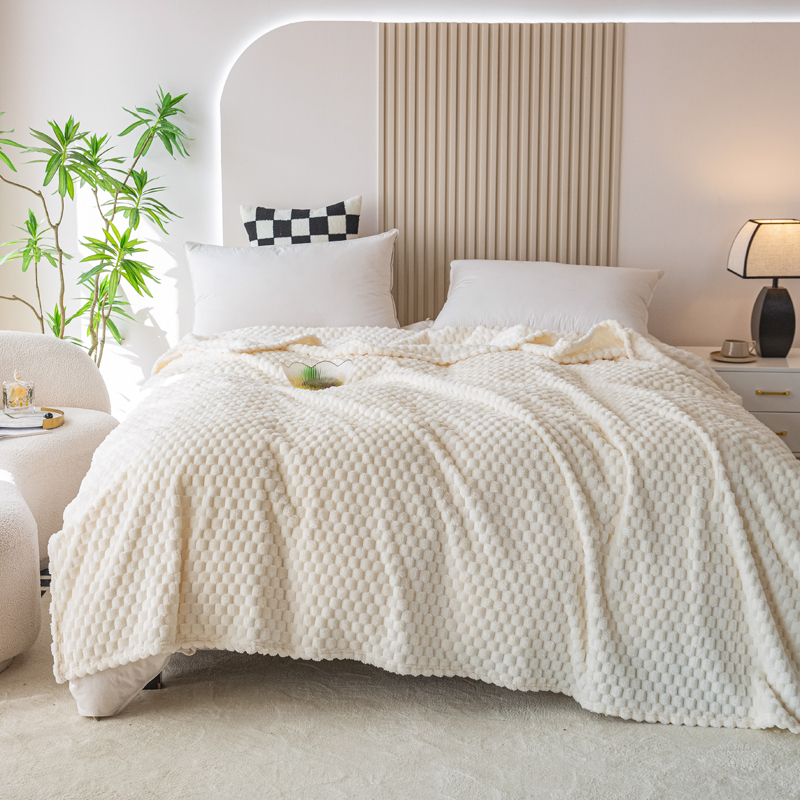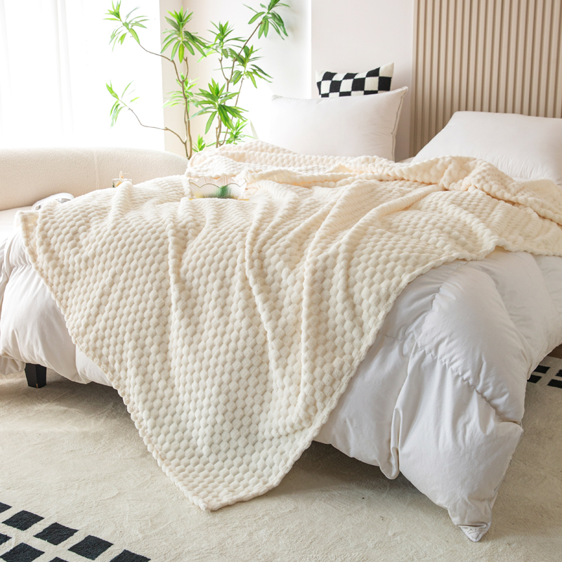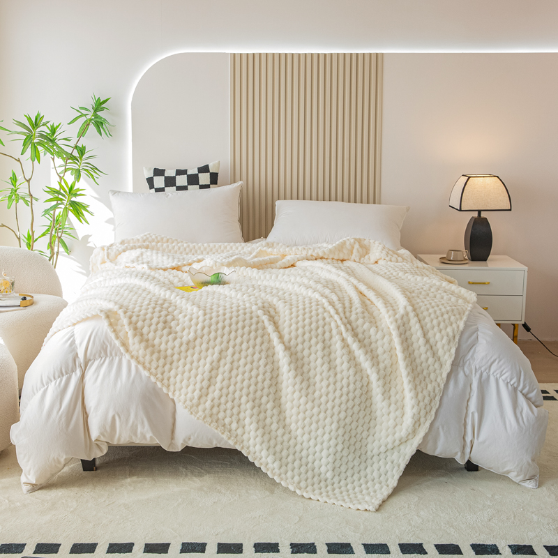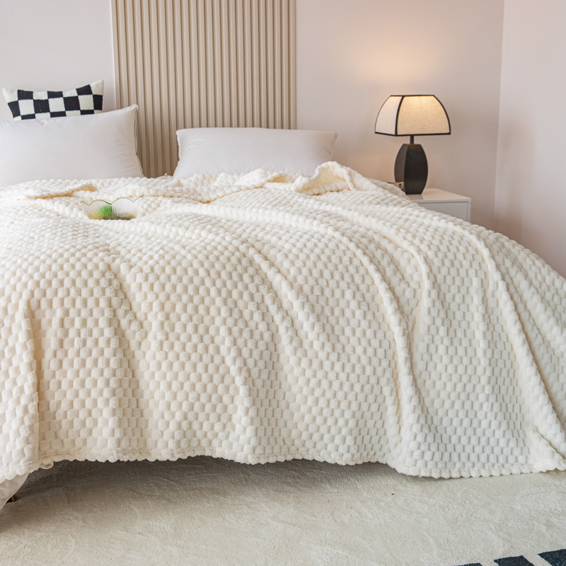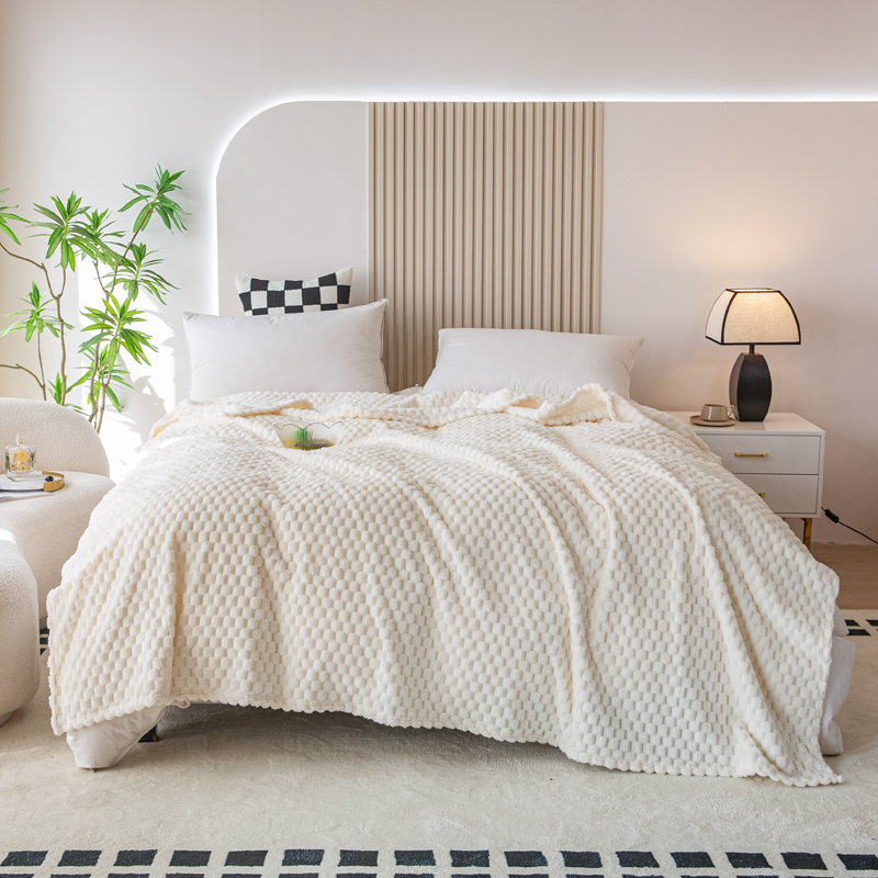商品名称:卡琪曼 2025新款高克重金龟绒牛奶绒毛毯毯子 米白