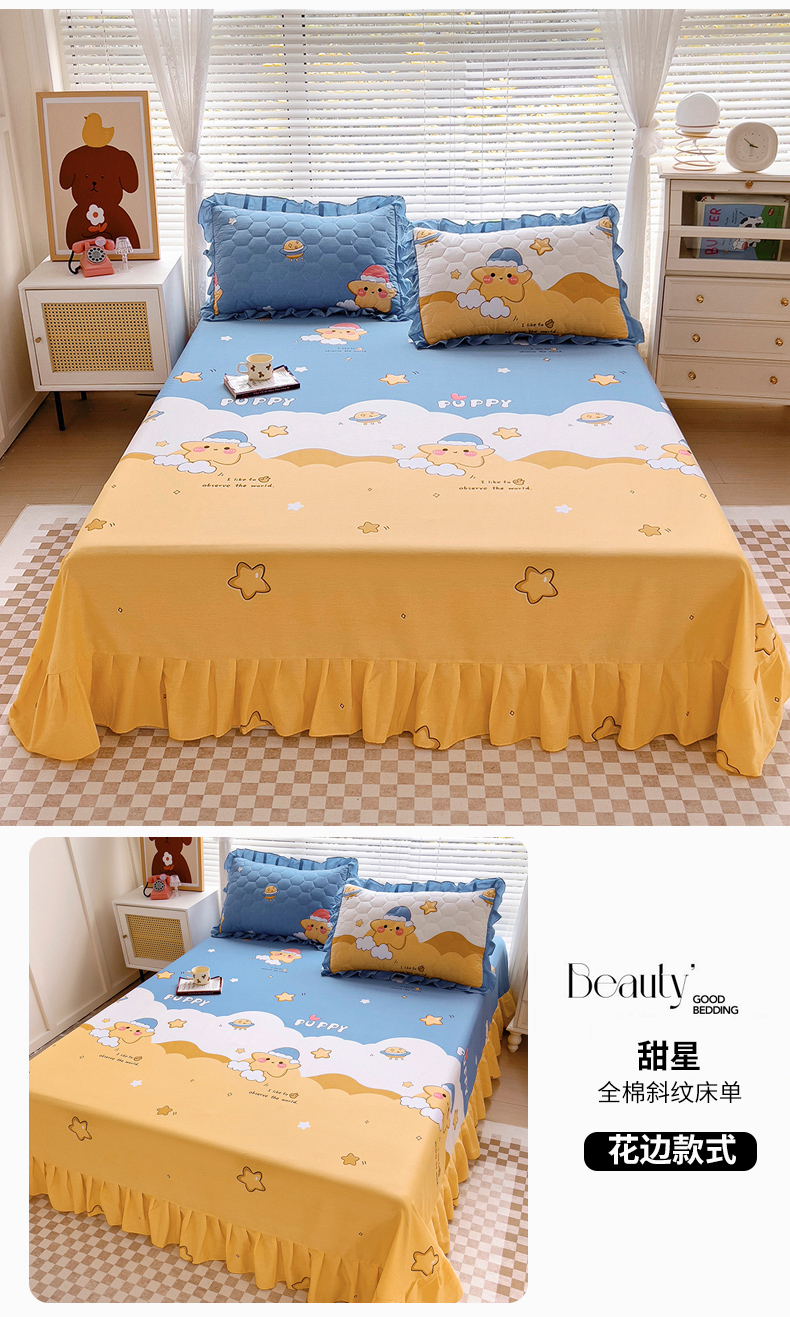 情煊家纺 2024新款全棉斜纹花边床单系列-印花款 甜星