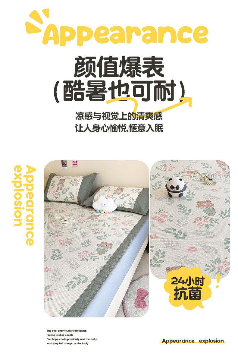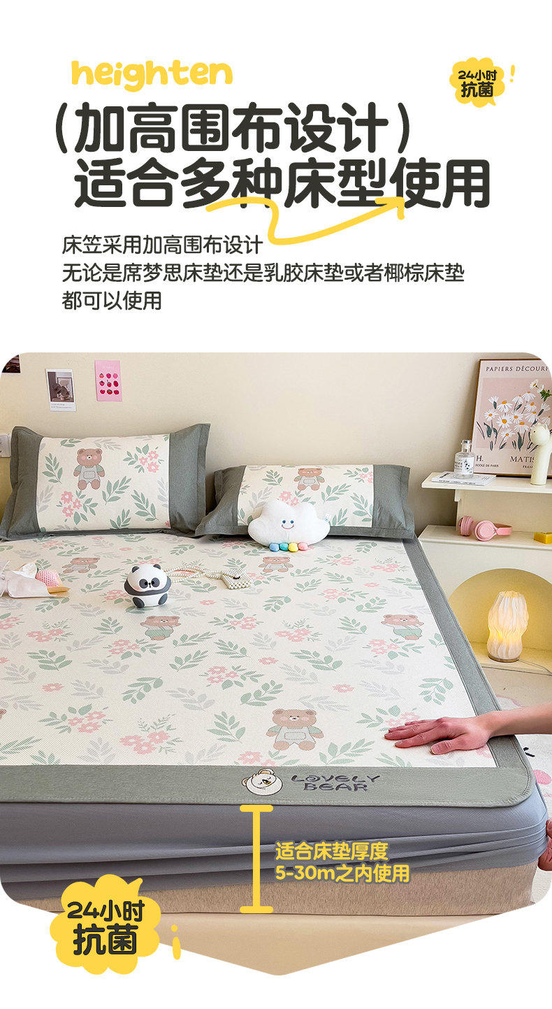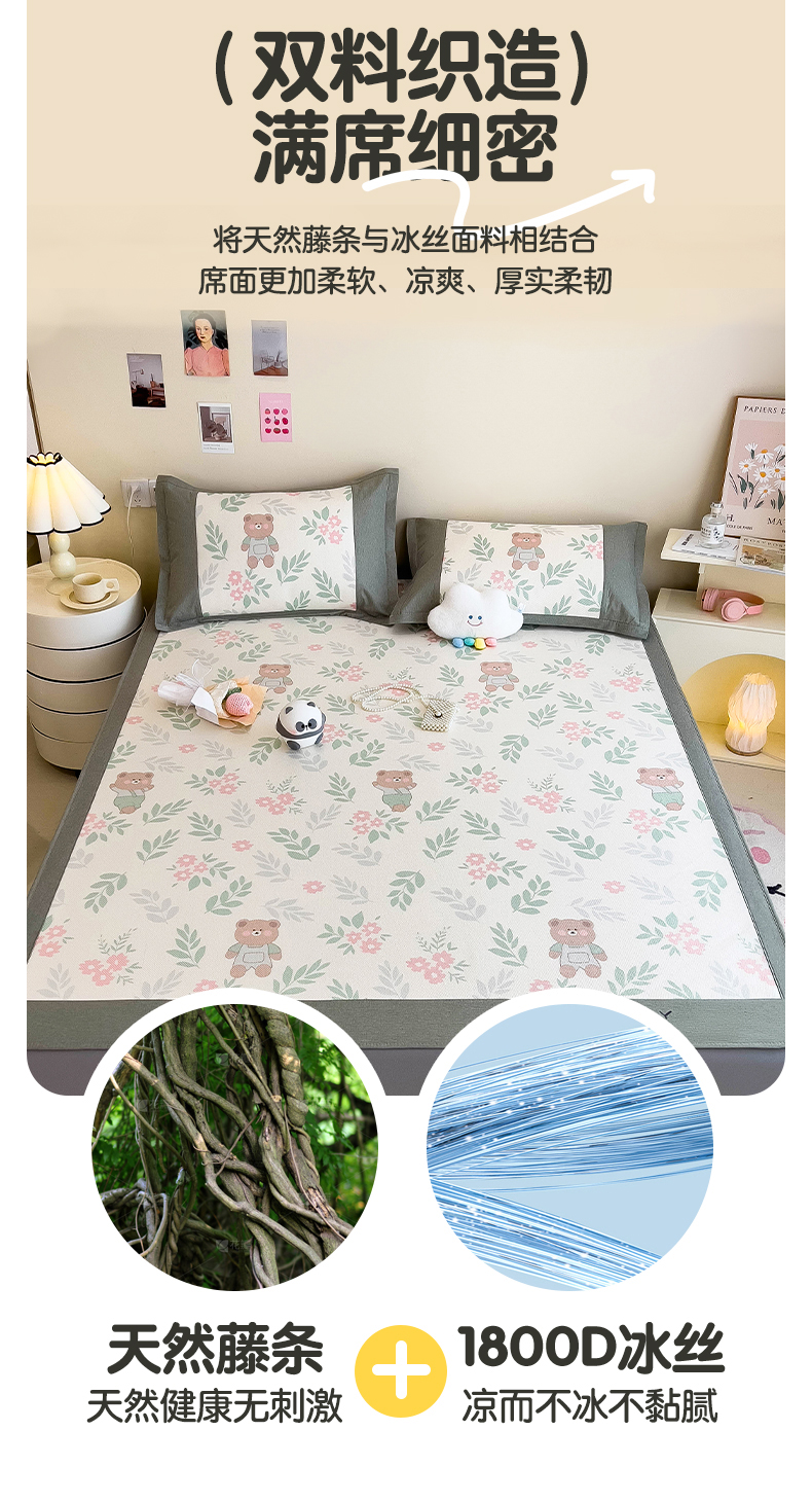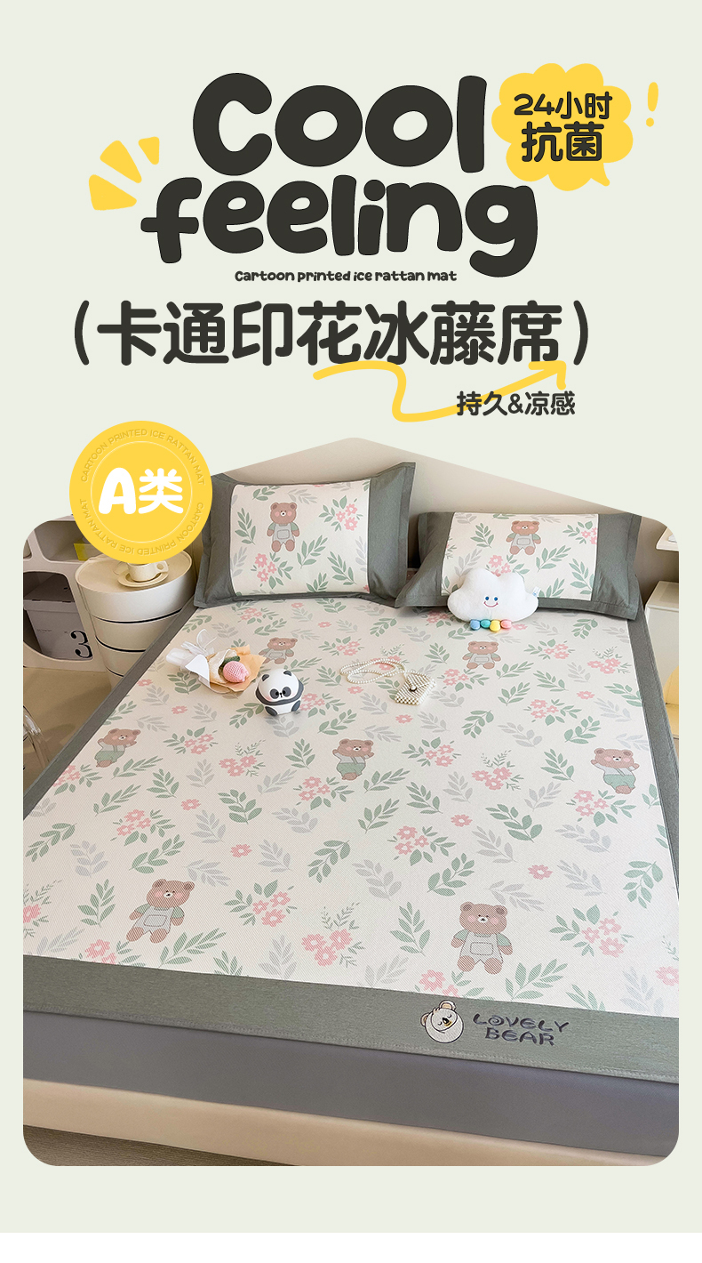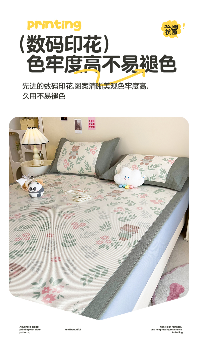 当前位置: 91家纺网 > 商品网购 > 床上用品 > 凉席 > 其他凉席 > 全季家居 2024新款A类抗菌数码印花冰藤席三件套 床笠款-熊乐园