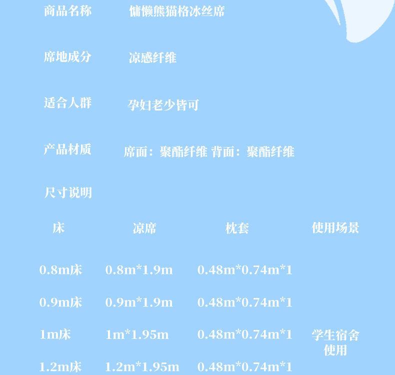 商品名称:孩子王家纺 2024新款凉感卡通冰丝席-学生款 心想柿成