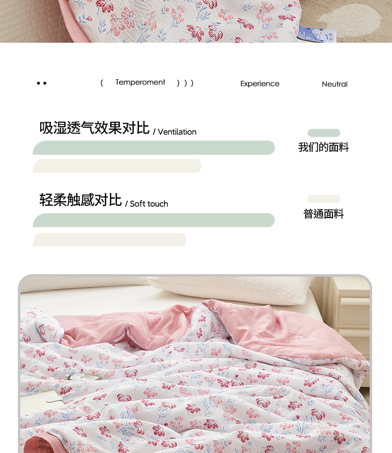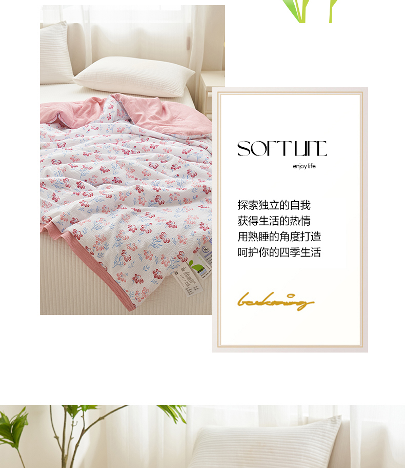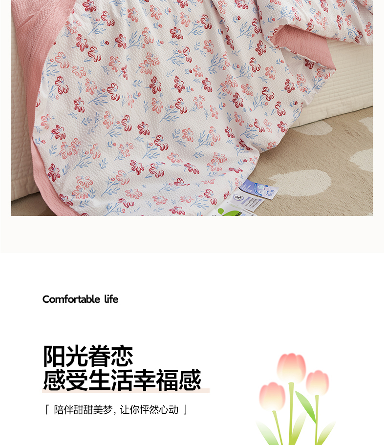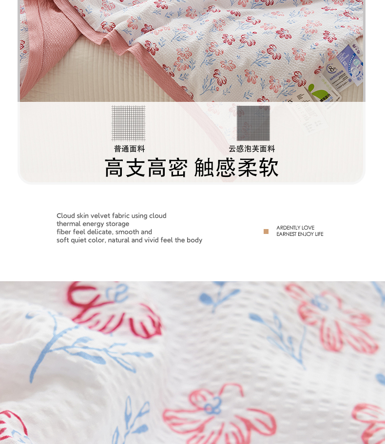 鑫琪莱家纺 2024新款A类云感泡芙夏被 繁花红