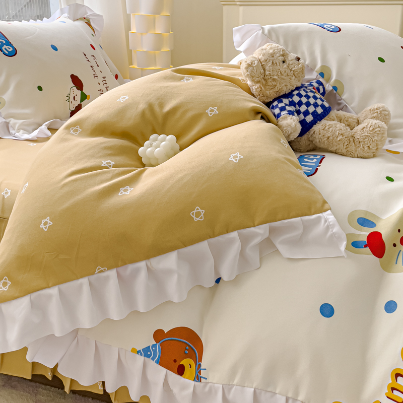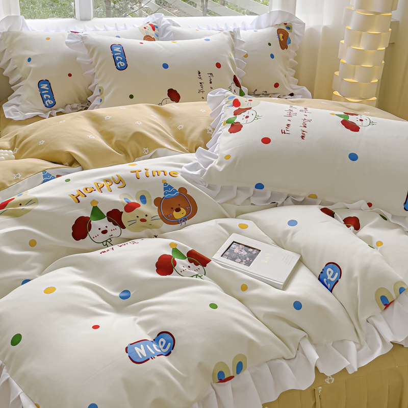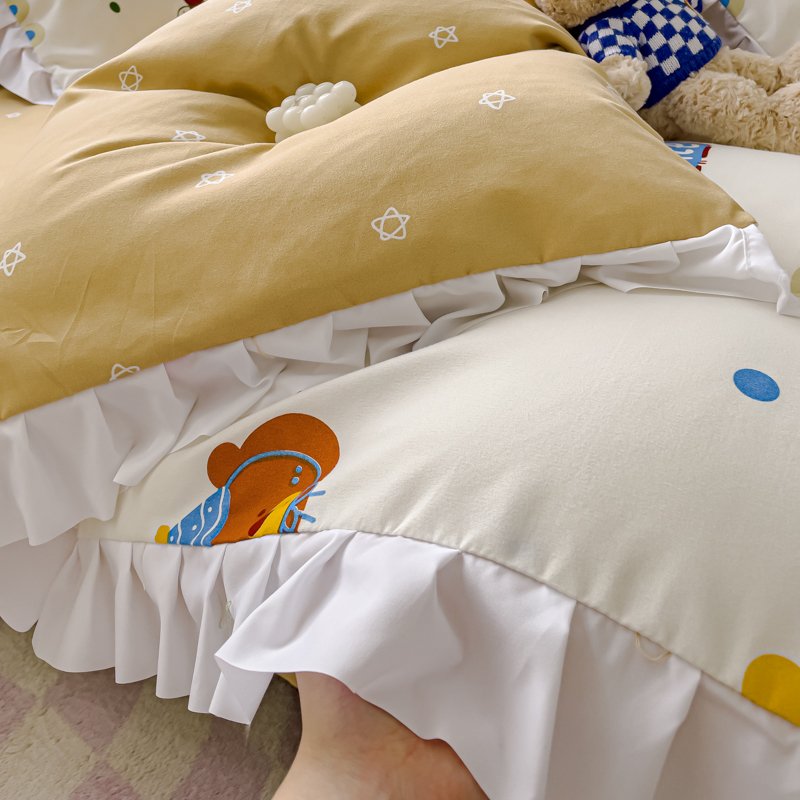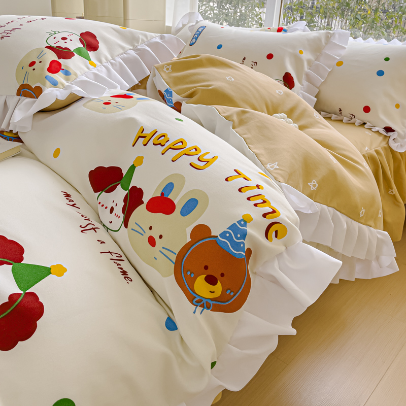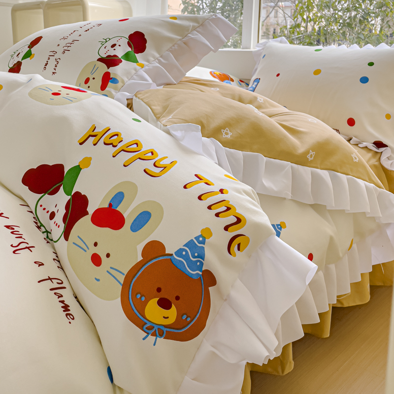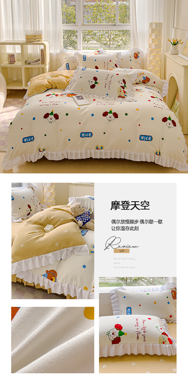 (总)麦瑞家纺 2024新款韩版公主风花边四件套,花园兔,熊宝贝,桔小花,汪星人,cat猫,可爱小熊,小葡萄,紫色兔兔,甜心世界,元气桃桃,晴空,童年游戏,摩登天空